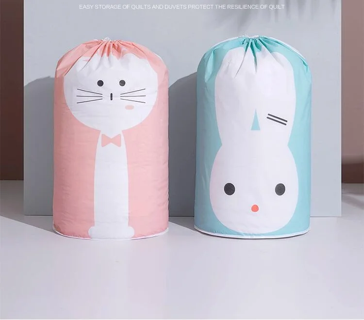 Материал: PEVA Цвет: розовый кот, тупой медведь, милый кролик Упаковка продукта: сумка для хранения * 1 Большая емкость, прочный и прочный Храните одежду, одеяла, Стирайте и повторно Используйте