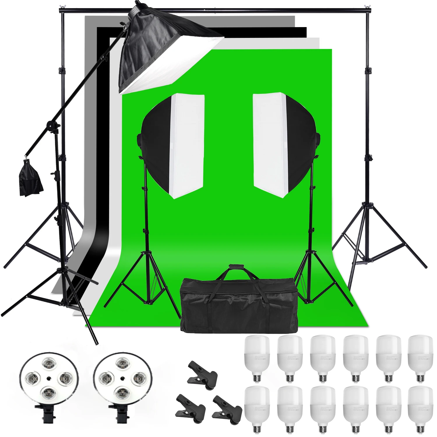Бренд zuochen Тип для студийного освещения Лампа Тип люминесцентные лампы Общая мощность (ватт) 2250 Вт равная 25 Вт светодиодный лампы 12 шт Цвет Температура 5500K Размер софтбокса 50x70cm Подставка для фона Szie 2x3m Фон Размеры 1.6x3m Цвет фона белый, черный, зеленый и серый Вес около 18 кг Светильник подставки: Функция: для обеспечения безопасности вашего осветительного оборудования во время использования и поддержки всех основных фототехнических приборов, включая отражатели, софтбоксы, фонари, зонты, фоны и многое другое. Прочная безопасная 3 ножки с заблокированной системой может надежно удерживать светильник и зонтик и мягкий ящик. Тип: Штатив для фотосъемки Цвет: черный Материал: алюминиевый сплав Рабочая высота стойки: 0,68 М ~ 2 м Максимальная высота: 200 см Максимальная нагрузка: 4 кг/8.82lb Вес: 2,3 кг 1x2 м подставка с стрелой: Длина стойки: 2 м Телескопическая стрела с 2 секциями, расширяющимися от 75 см до 170 см и 1/4 дюйма винтовой головкой и штоком для насадок. Гаечный замок имеет четыре отверстия разных размеров на каждой стороне, чтобы соответствовать различным стендам Диаметр отверстия: 31, 24, 20, 17 мм (обратите внимание, что этот метод затяжки запорной гайки компенсирует несколько мм с установками большего диаметра до заявленных размеров отверстия). Гайка замка может быть повернута, чтобы поставить свет под разными углами. 2 сумки с песком и крючок обеспечивают баланс против веса света. Софтбокс: Размеры: 50x70cm E 27 разъем С бесплатной внешней крышкой диффузора Ultimate смягчает поток света и удаляет тень, чтобы сделать идеальную съемку. Серебристый внутренняя уход за кожей лица может свести к минимуму светильник потери и максимизировать светильник распространения. Белый мягкий чехол усиливает эффект мягкого светильник. 2x4 светильник адаптер: Преимущество: Безопасный в использовании, один переключатель для управления одной лампой (когда одна розетка не может быть использована, это не повлияет на другую розетку), экономия энергии Идеальный источник питания: AC100V-240V/50-60 Гц Световая розетка: E27 x5шт Разъем Материал: Керамика Адаптер софтбокса: металлический Адаптер для установки прямоугольника, квадрата, квадрата и восьмиугольный софтбокс. Предохранитель: 5A (для справки, обратитесь к фактическому продукту) 1 5070 одноголовый софтбокс Размер: 50x70cm E 27 разъем Высококачественный Отражатель из нейлона Складная софтбокс и съемный занавес Цвета: черный/серебристый Ultimate смягчает поток света и удаляет тень, чтобы сделать идеальную съемку. Серебряное внутреннее лицо может минимизировать потерю света и увеличить распространение света. Белый мягкий чехол усиливает эффект мягкого света. 12 шт. 25 Вт Светодиодный светильник: 25 Вт/5500 к Светодиодная лампа = 250 Вт компактные лампы накаливания. Всего 2x250 Вт = 500 Вт. Выдает много света для количества энергии, которую они используют 8000 часов жизни на лампу E27 Тип лампы Лампа Тип: светодиодный Мощность: 25 Вт Напряжение: 240V Вес: 0,3 кг Примечание: Не прикасайтесь к стеклу вручную, используйте чистую ткань для установки лампы. Пожалуйста, Всегда держите пластиковую часть, а не стеклянную часть. Фон с изображением: Преимущество: стоимость меньше, прост в использовании, подходит для всех приложений, таких как фильмы спецэффектов и фотографии, Портативный и складной, впитать весь свет без отражения Размеры: 1,6*3 м (5FT * 10FT) Материал: Нетканая