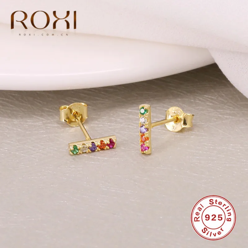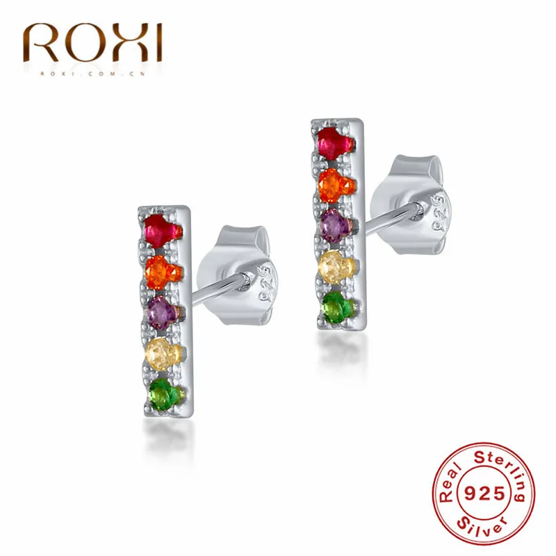 ROXI минималистичные серьги-гвоздики из стерлингового серебра 925 пробы с разноцветными фианитами и радужными кристаллами для женщин, модные ювелирные изделия, подарок