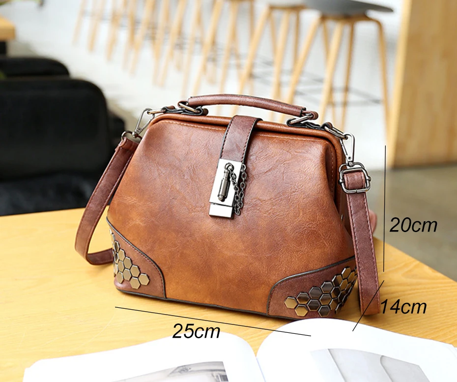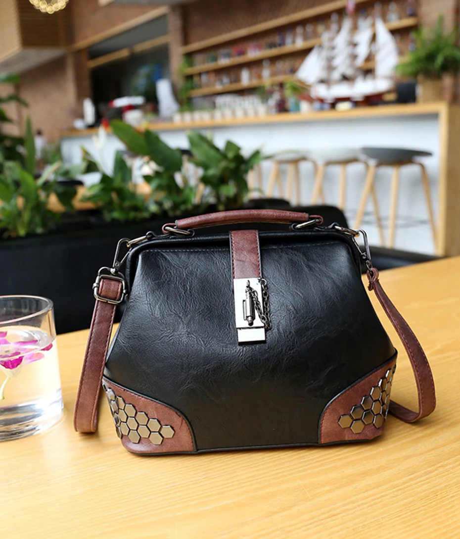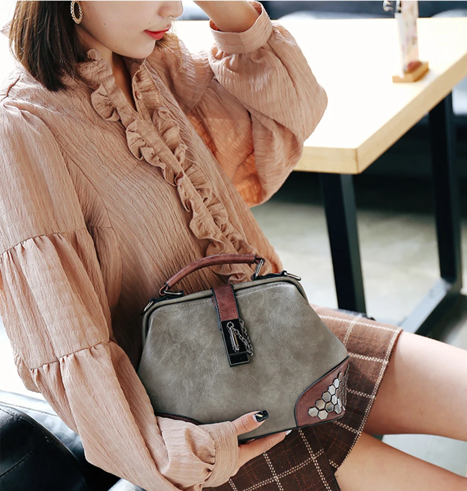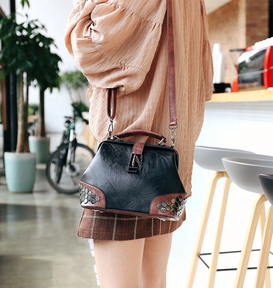 Женская сумка, кожаная маленькая сумка для доктора, сумка на плечо, женская сумка через плечо, сумка с замком, на цепочке, с заклепками, винтажные женские сумки, Bolsa Feminina