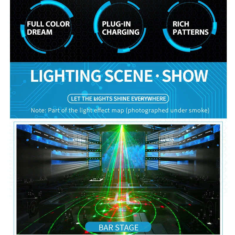 Название продукта: фестиваль dj автомобиль звездное небо проекционная лампа Источник питания: USB питание ed с батареей 18650 2000mAh Лазерный светильник: 100 мВт 650нм красный; 50 мВт 532 нм зеленый; Режим управления: кнопка переключения, Радиочастотный пульт дистанционного управления с большим радиусом действия, активация звука Облученная площадь: около 80-120 квадратных метров/860 квадратных футов-1290 квадратных футов Рабочая температура: -30 ℃ -30 ℃. Материал корпуса: алюминий + АБС Длина кабеля: 1,2 м/3,95 средства ухода за кожей стоп В посылка включает в себя: 1 лазерный проектор, 1 пульт дистанционного управления, 1 Дисковая полка, 1 пластиковый диск, 1 руководство пользователя на английском языке, 1 винтовые принадлежности. Продукт Размеры: 20x11.5x8.5cm