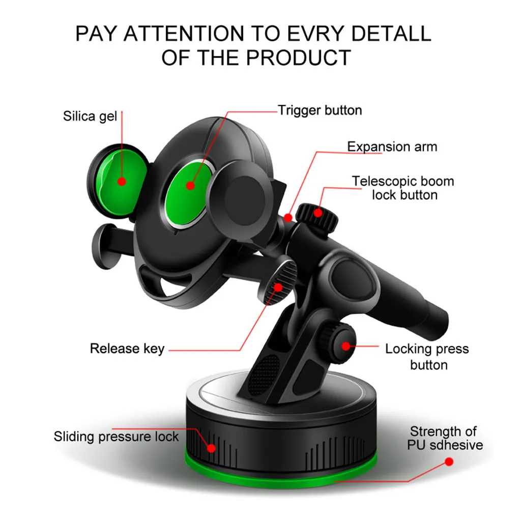 360 ° вращающийся Кронштейн, универсальная силиконовая присоска, телескопическая длинная штанга Дизайн, регулировка расстояния