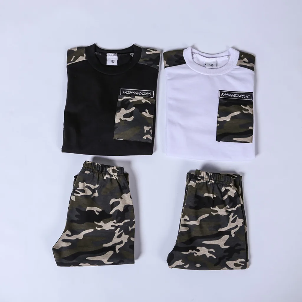 Детский спортивный костюм с буквенным принтом для мальчиков-подростков; Камуфляжные топы и штаны; Комплект одежды из 2 предметов