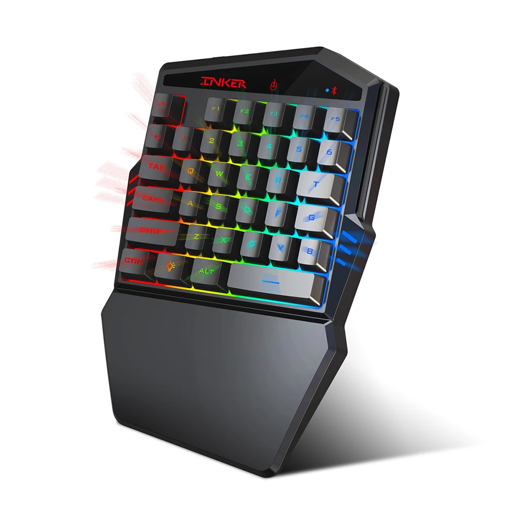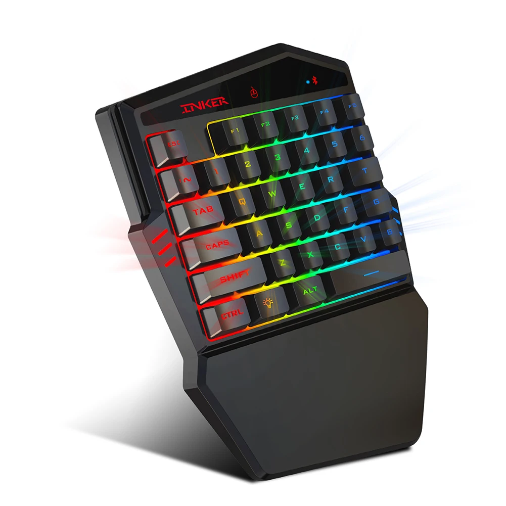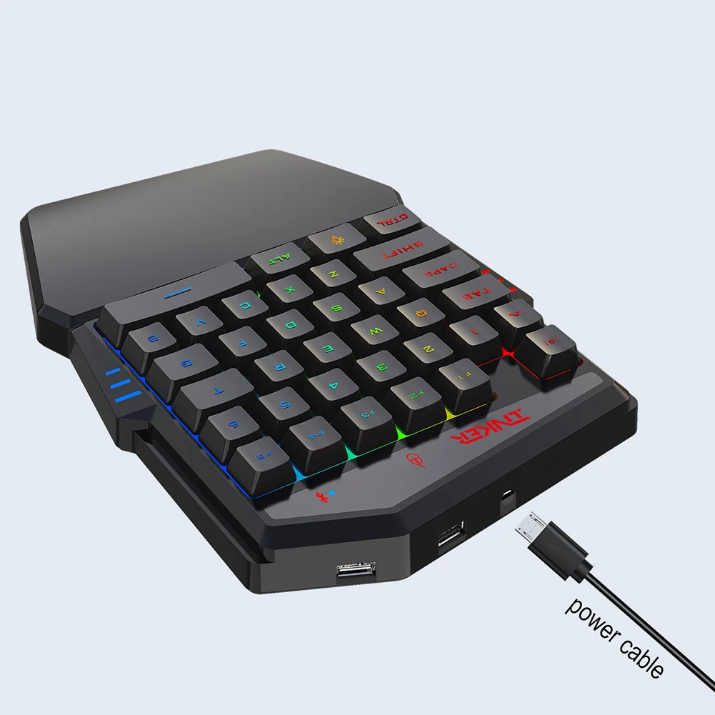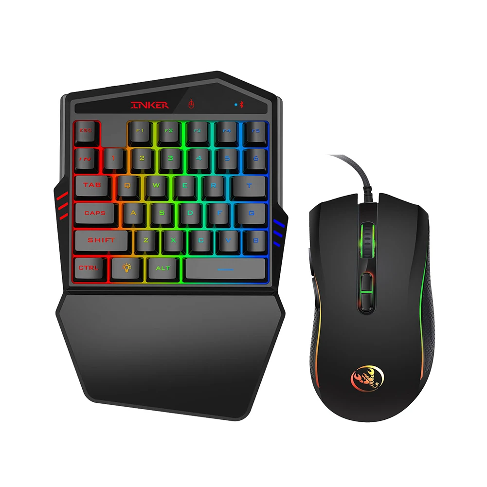 1. Прямое соединение Bluetooth 4,2: мобильный телефон может легко подключаться к bluetooth-сигналу клавиатуры, чтобы воспроизводить высокоскоростное соединение с протоколом Bluetooth, обеспечивая бесперебойную работу без задержек.2. Эргономичный дизайн: клавиатура имеет двухточечную поддержку арки, эргономичный дизайн и двухточечную поддержку для комфортного ощущения.3. Светодиодный фон с радужной подсветкой: в комплекте с клавиатурой есть светодиодный светильник с радужной подсветкой и метрический набор с 35 кнопками.4. Управление кнопками по умолчанию: установка кнопок по умолчанию в игре, и вы обычно можете наслаждаться игрой без установки драйвера. Это зависит от действия кнопки по умолчанию в игре.5. Использование Примечание: Есть 2 порта USB и 1 порт питания 5 В на стороне двух продуктов. Блок питания или мышь и клавиатура должны быть подключены к порту, как указано в инфракрасной маркировке выше. Другие usb-порты могут использоваться только для зарядки устройства. Откройте окно «пауза телефона», чтобы ограничиться игрой и приводом приложений, прежде чем играть в игру.Описание:Это руководство является инструкцией Bluetooth клавиатуры для PUBG или Bluetooth игровой конвертер. Оба продукта могут быть применены ко всем смартфонам или планшетным ПК с android 5,0 + или с системой IOS. Оба продукта соединены с помощью Bluetooth и игр для смартфонов можно воспроизводить с помощью мыши и клавиатуры. Каждый продукт может использоваться только для одного устройства, и преобразователь должен быть заряжен источником питания 5 В.Технические характеристики:Мышь Технические характеристики:Цвет: черныйМатериал: АБС-пластикСистема отслеживания: оптическаяНоминальное напряжение/электрический ток: 5 В/100 мА постоянного токаТип подключения: проводнойДлина кабеля: прибл. 150 см/59.06inПорт: USB 2,0DPI: 1200/1600/2400/3200dpi.Срок службы переключателя мыши: 10 миллионов цикловКнопки: влево, вправо, колесо прокрутки, DPI +,DPI -, Advance,Эффект на светильник: яркийСистема поддержки мыши: для Windows 7/8/10/2000/XP/Vista Mac OS или последняя WindowsКлавиатура Технические характеристики:Материал: АБС-пластикВерсия Bluetooth: версия Bluetooth 4,2Срок службы переключателя клавиатуры: 50 миллионов цикловКоличество кнопок: 35 кнопокВес нетто мыши: около 131 гМышь, чтобы определить подходящий размер изделия: около 12.7X7x 4 см/5*2,76 * 1.57inДлина кабеля: около 150 см/59.06inВес клавиатуры: около 274,5 гРазмер клавиатуры: около 25.5X17X 3 см/10,04*6,69*1,18 дюймовУпаковочный лист:Bluetooth 4,2 клавиатура с одной рукой * 1Проводная мышь * 1Руководство пользователя * 1Мобильный телефон держатель * 1Примечание 1:1. Драйвер данного продукта доступен только для версии на китайском и английском языках. Загрузка драйвера в APP Store будет автоматически соответствовать языковой версии устройства, которое вы используете для установки. Драйвер приложения используется не только для настройки кнопки, но и для онлайн-обновления. Если устройства работают должным образом, будет лучше не обновляться, обновление займет чип, работающий с памятью. Метод обновления: вы можете найти советы по обновлению или напоминание о обновлении прошивки в правом верхнем углу интерфейса приложения (маленький дисплей с красной точкой), это означает, что у него есть новая версия программы, вы можете нажать кнопку «обновить приложение» для обновления. А затем нажмите обновление прошивки, вам нужно отсоединить соеди