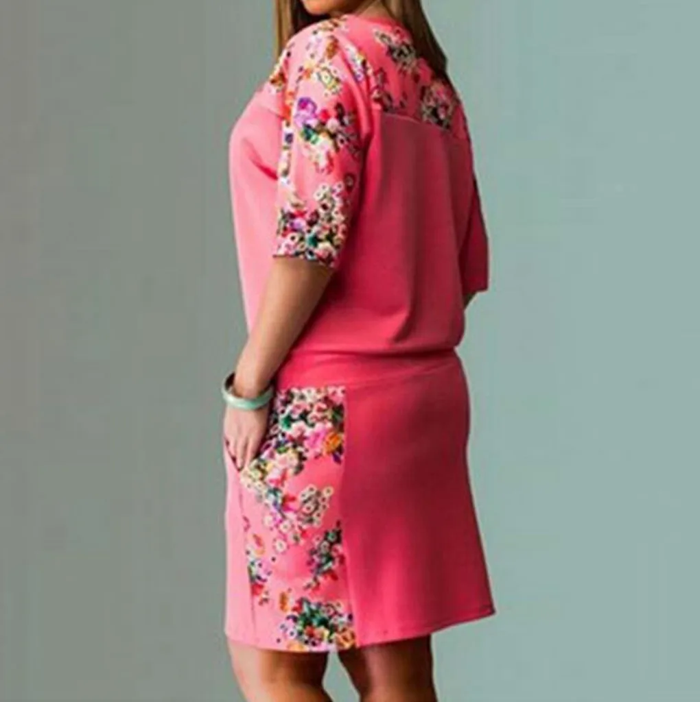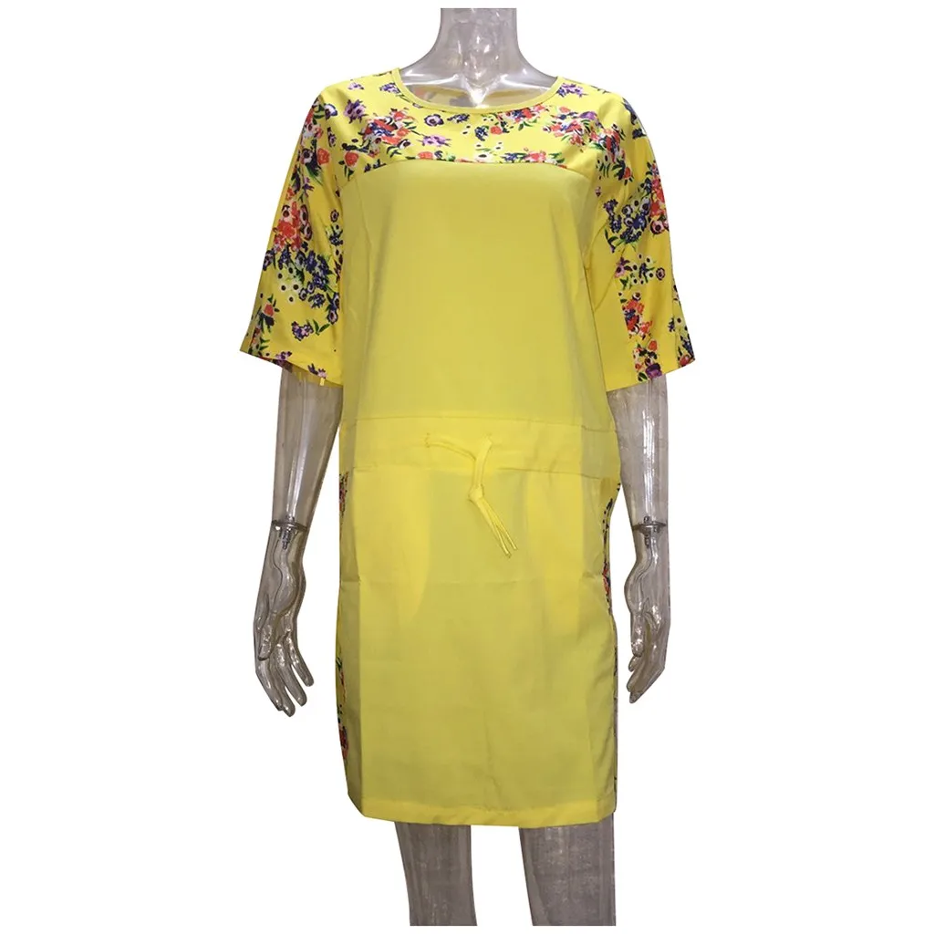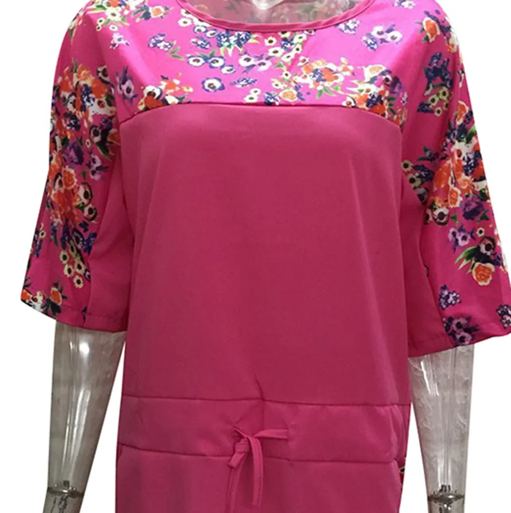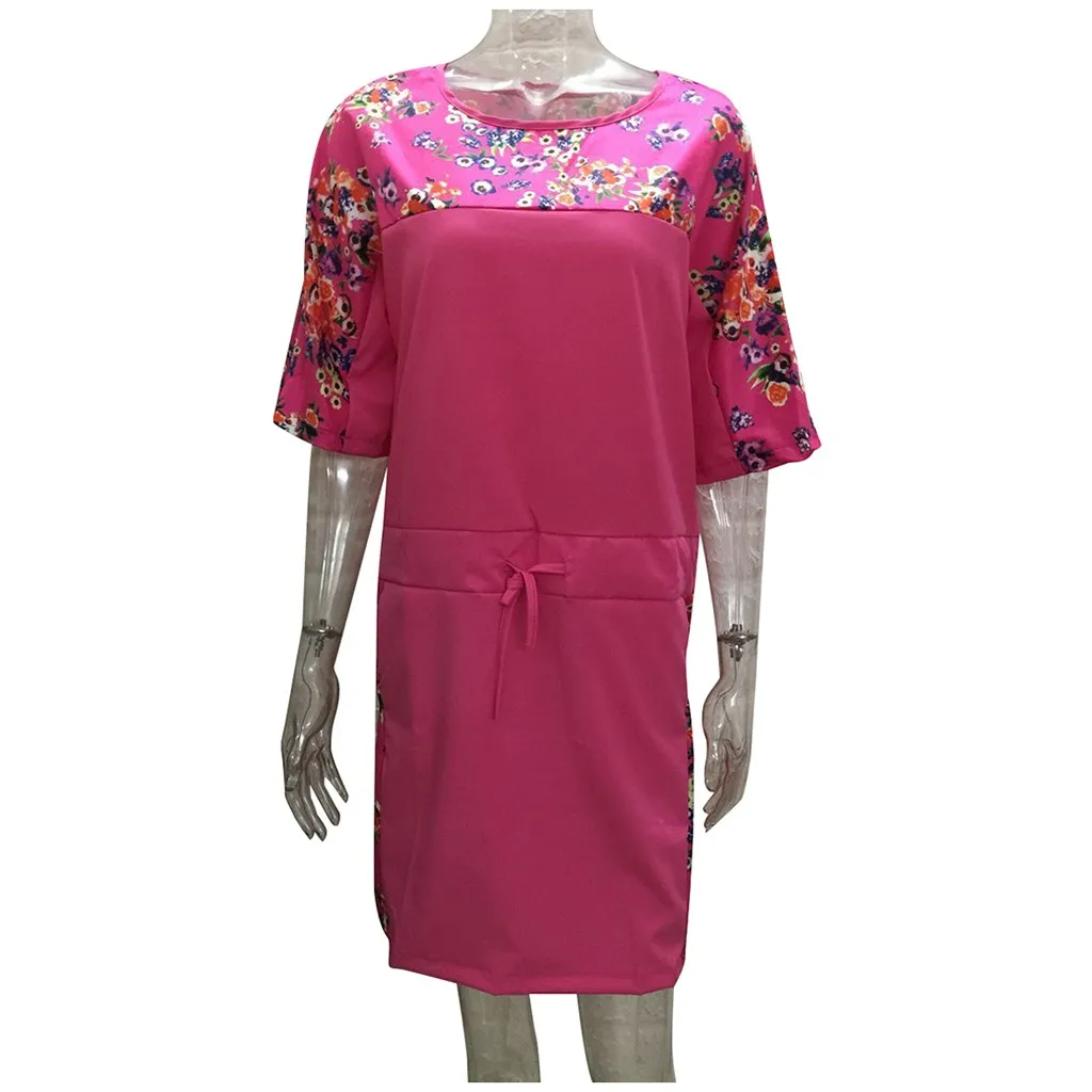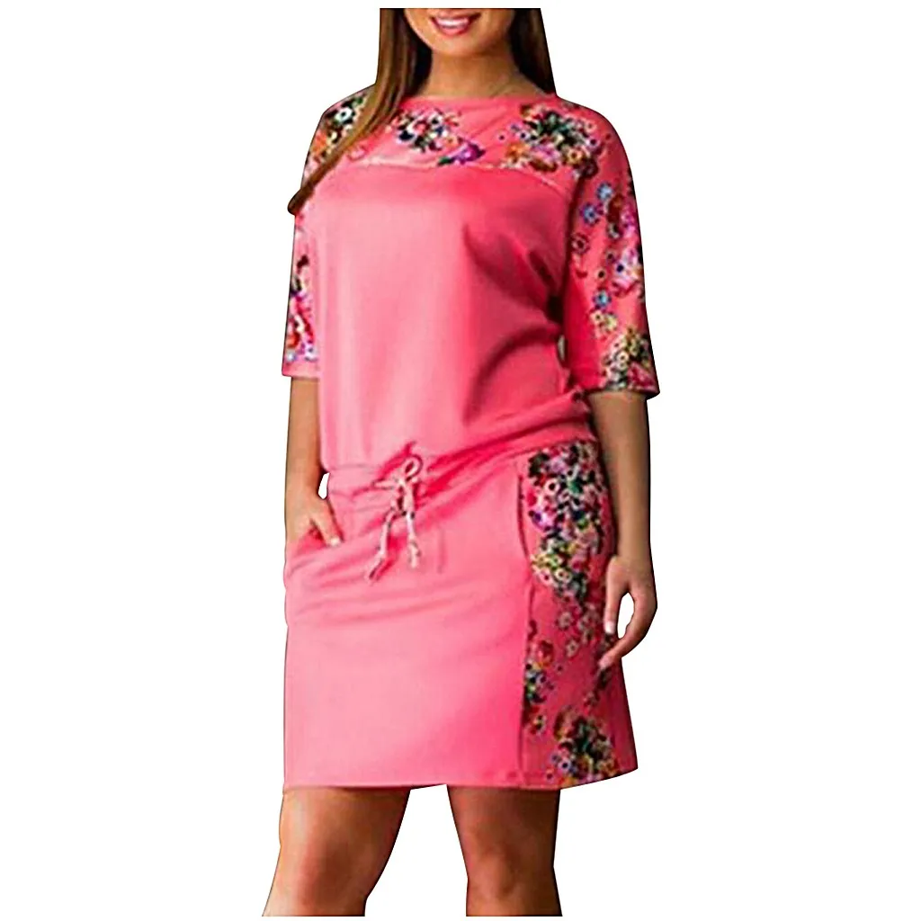 Женское платье с короткими рукавами, круглым вырезом и принтом на бретелях, большие размеры