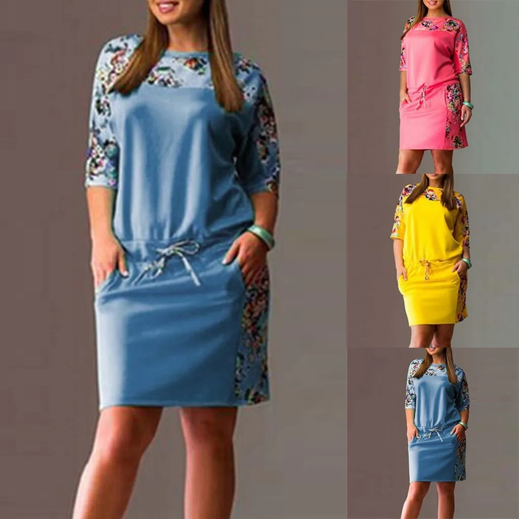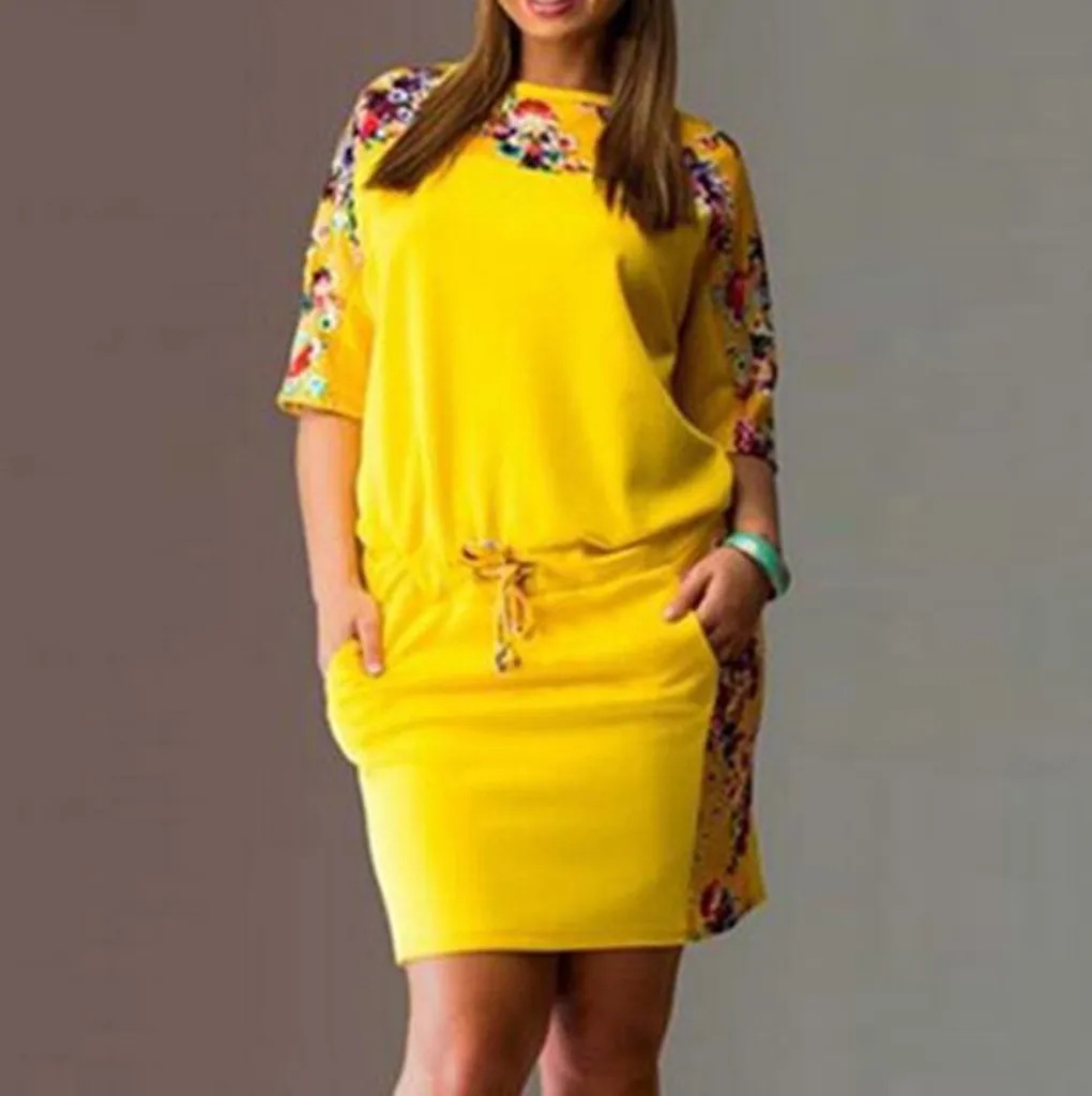 1. Особенности: плюс размер, майка, рукав, платье, стильный и модный дизайн, Осеннее Повседневное платье