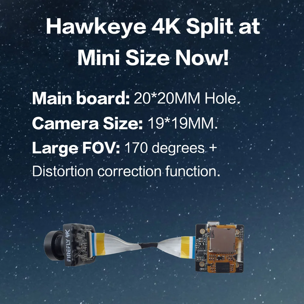 Описание: Производитель: соколиный глаз Модель: Firefly Split mini Основная плата: отверстие 20x20 мм Размер основной платы: 28x28мм Камера: 19x19mm WDR (широкий динамический диапазон): Да Сенсор: КМОП-матрица Разрешение видео: 4K 30FPS(16:9), 2,7 K 60FPS(16:9), 2,7 K 30FPS, 2,5 K 60FPS(16:9), 2,5 K 30FPS,1080P 120FPS,1080P 60FPS,720P 240FPS,720P 60FPS Угол обзора: 170 градусов Искажения корректировки: Да ТВ система: NTSC/PAL Задержка ТВ: 0,04 S/PAL ISO: авто, 100, 200, 400, 800, 1600, 3200. Ручной затвора: Да Характеристики:-2,0 до + 2,0 Формат: H.265/H.264(.MP4) Видео по ремонту: Да SD карта: Micro SD карта U1 Размер sd-карты: 8-128G Интерфейс: Micro-USB Язык: Egnlish/китайский/Мульти Частота: 50/60 Гц Мощность: 5V • Сила тока: 500MA Вес изделия: 14 г Вес посылка: 55 г Размер камеры: 19 мм × 19 мм Размер продукта (Д x Ш x В): 38 × 69 × 32 мм Размер посылка (Д x Ш x В): 99 × 69 × 32 мм Посылка включает в себя: 1 x Экшн-камера Hawkeye Firefly Split 4K FPV Mini 1 x плата 1 х Расширенная доска 1 x keyboark 1x19 мм до 28 мм экстенсивная задняя сторона 1x20 мм до 30 мм Расширенная доска 1 x FPC плоский разъем кабеля