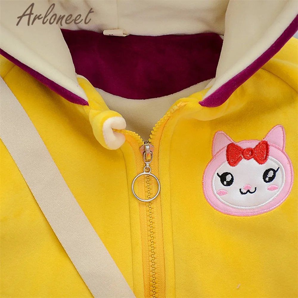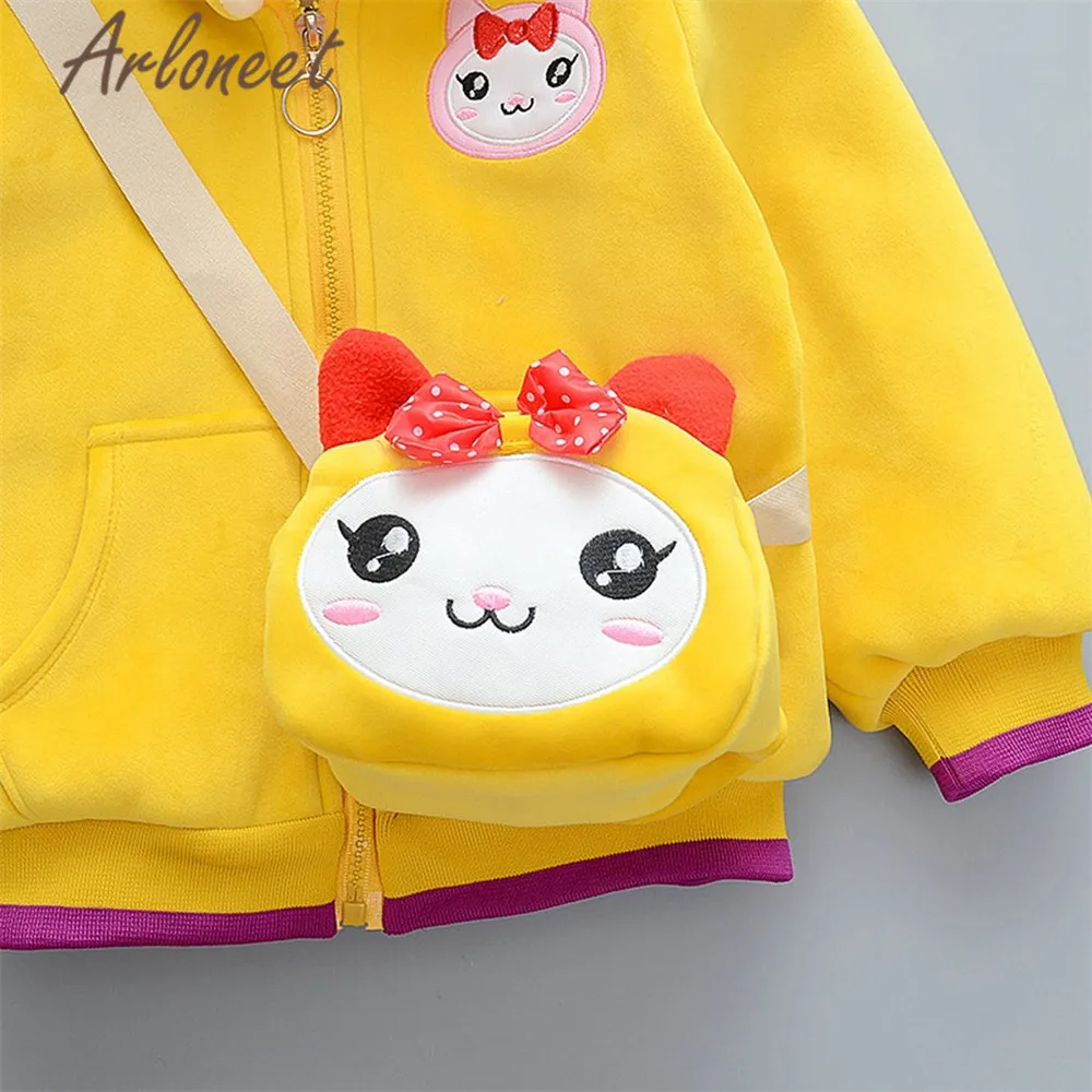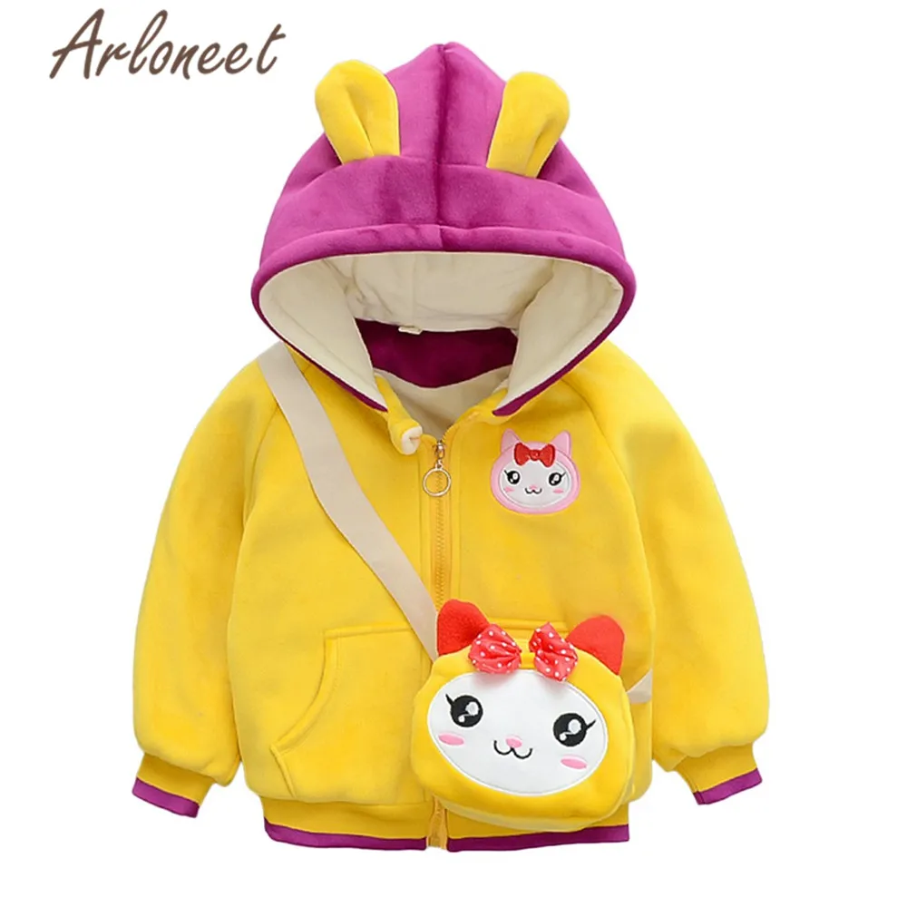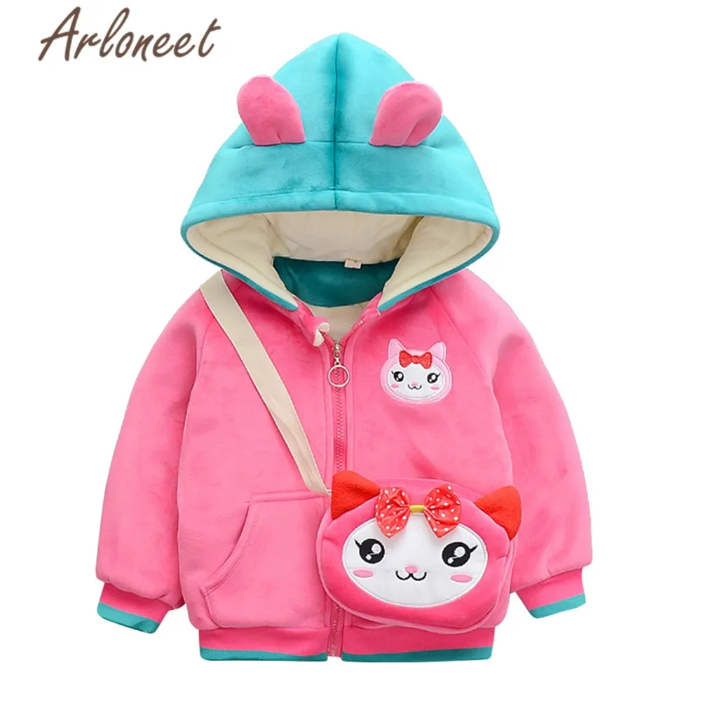 ARLONEET/пальто для малышей; теплое зимнее плотное пальто для мальчиков; Верхняя одежда с капюшоном; сумки с животными; куртка на молнии; пальто с рисунком кота; куртка для маленьких девочек