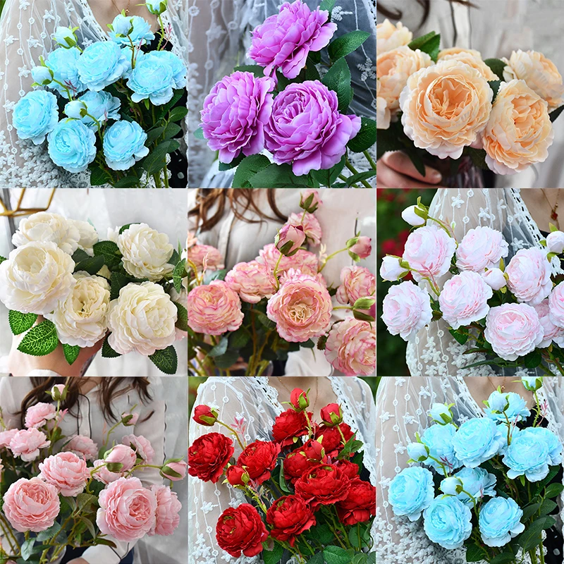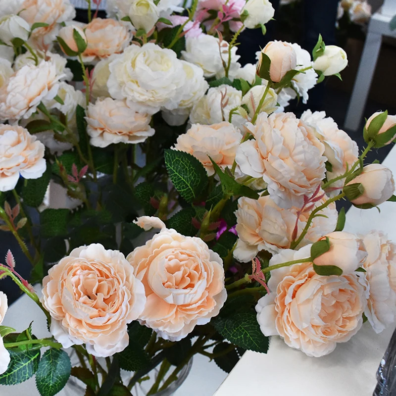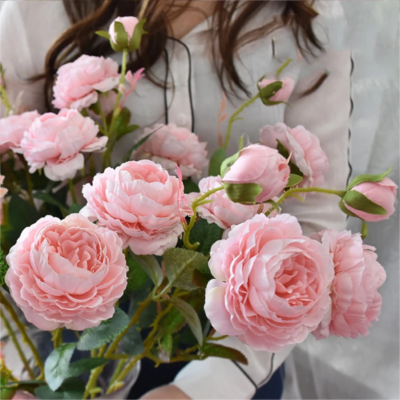 *3Искусственные цветы пиона, лаконичный свадебный букет, украшение стола