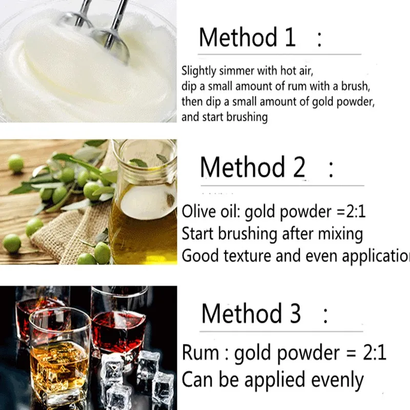 Применение: помадка, шоколад, крем, украшение поверхности печенья, макарон, Желе Десерт, изготовление помады, бартендинг и т. Д.