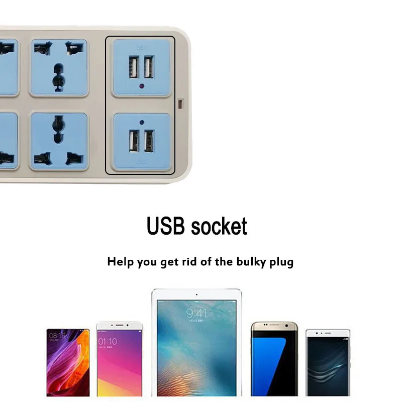 8AC Universal Outlets 4USB Charger Ports Power Strip