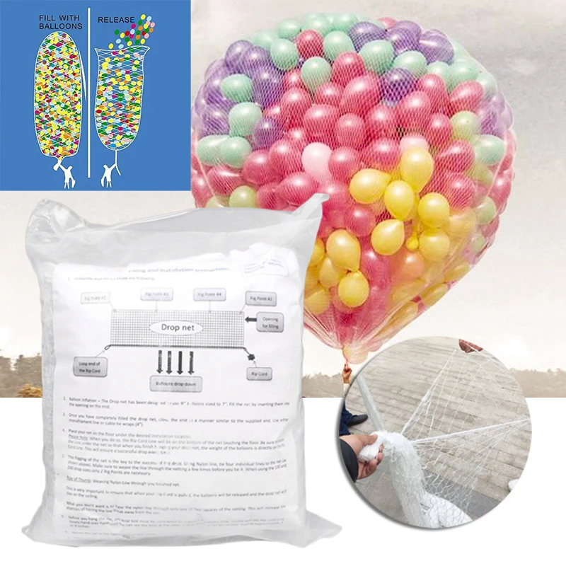 Description: The number of balls is measured according to the standard 10-inch latex balloon. The material of the release net is soft, and the drop net is hard(Excluded Balloons)