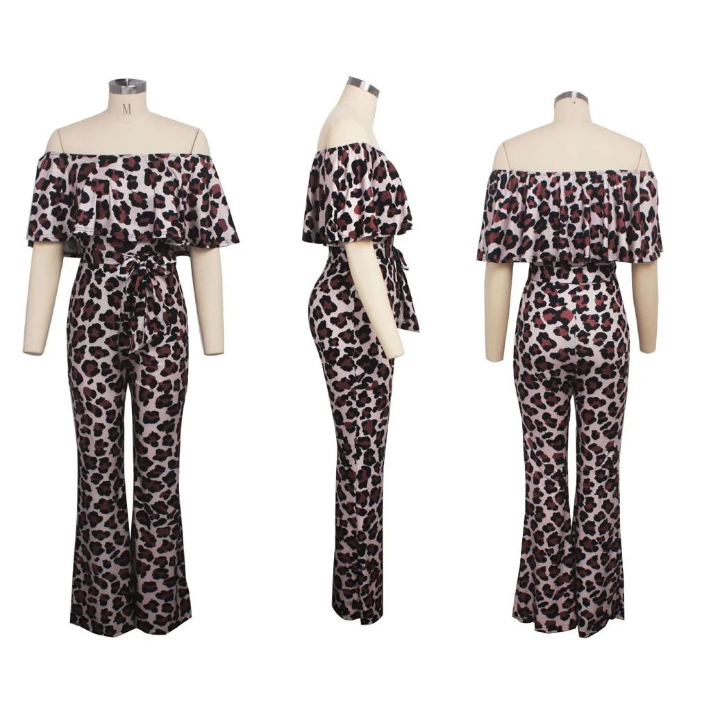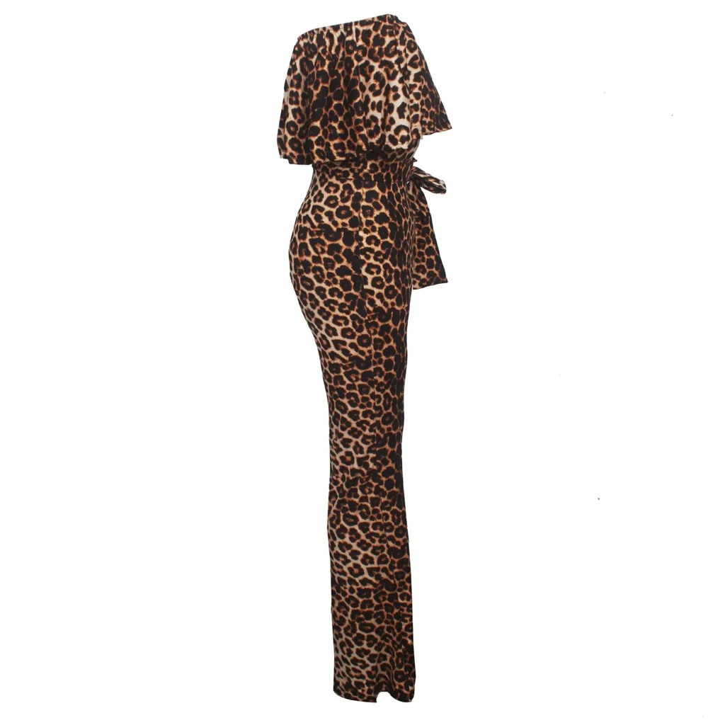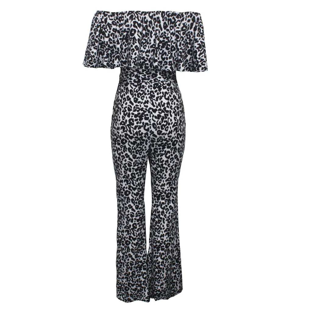Женский леопардовый комбинезон, модный сексуальный комбинезон с открытыми плечами и коротким рукавом, комбинезон на груди, осенне-зимний комбинезон, комбинезоны, 2020 E