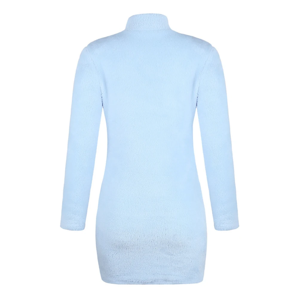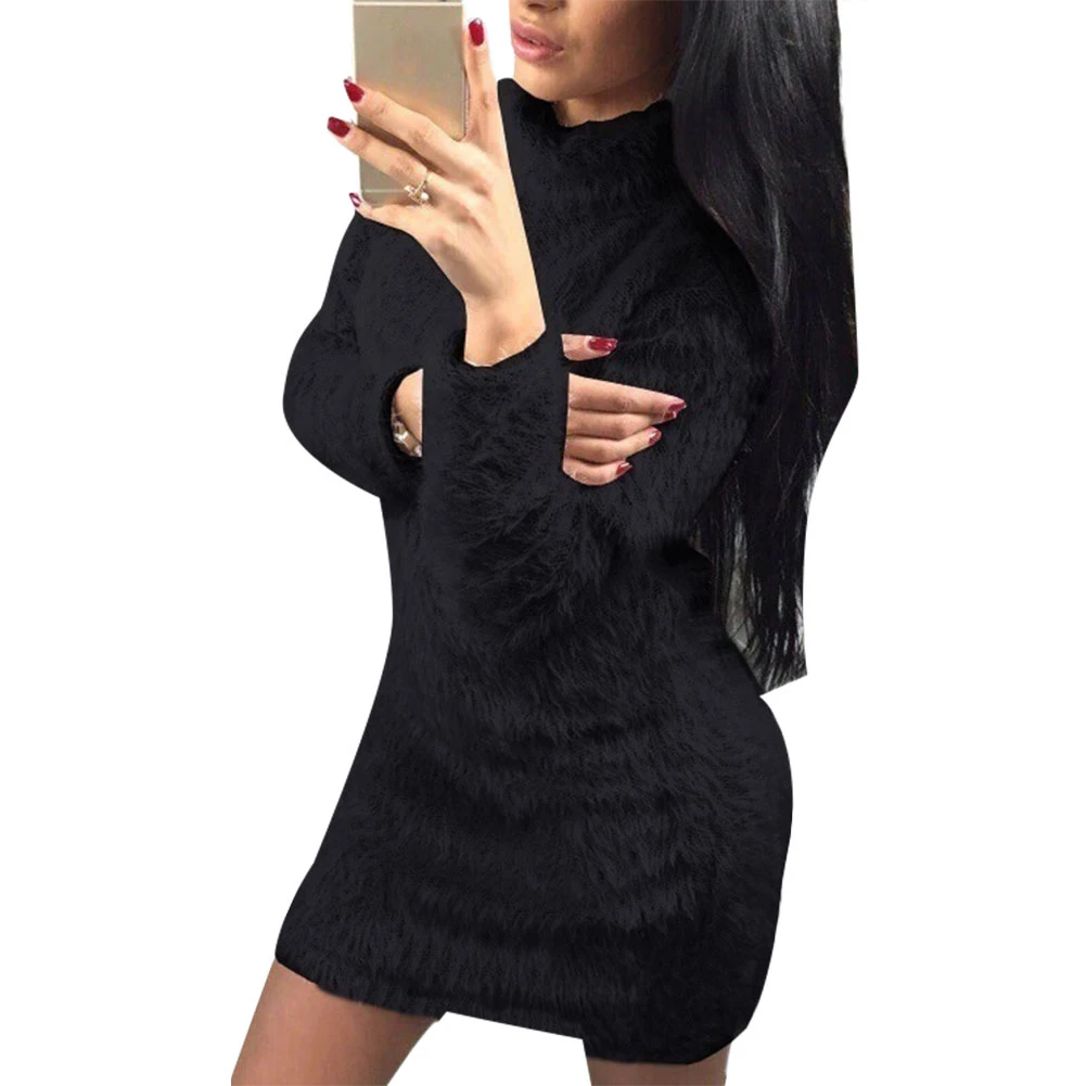 Women Autumn Winter Solid Color Sexy Turtleneck Long Sleeve Sweater Mini Dress