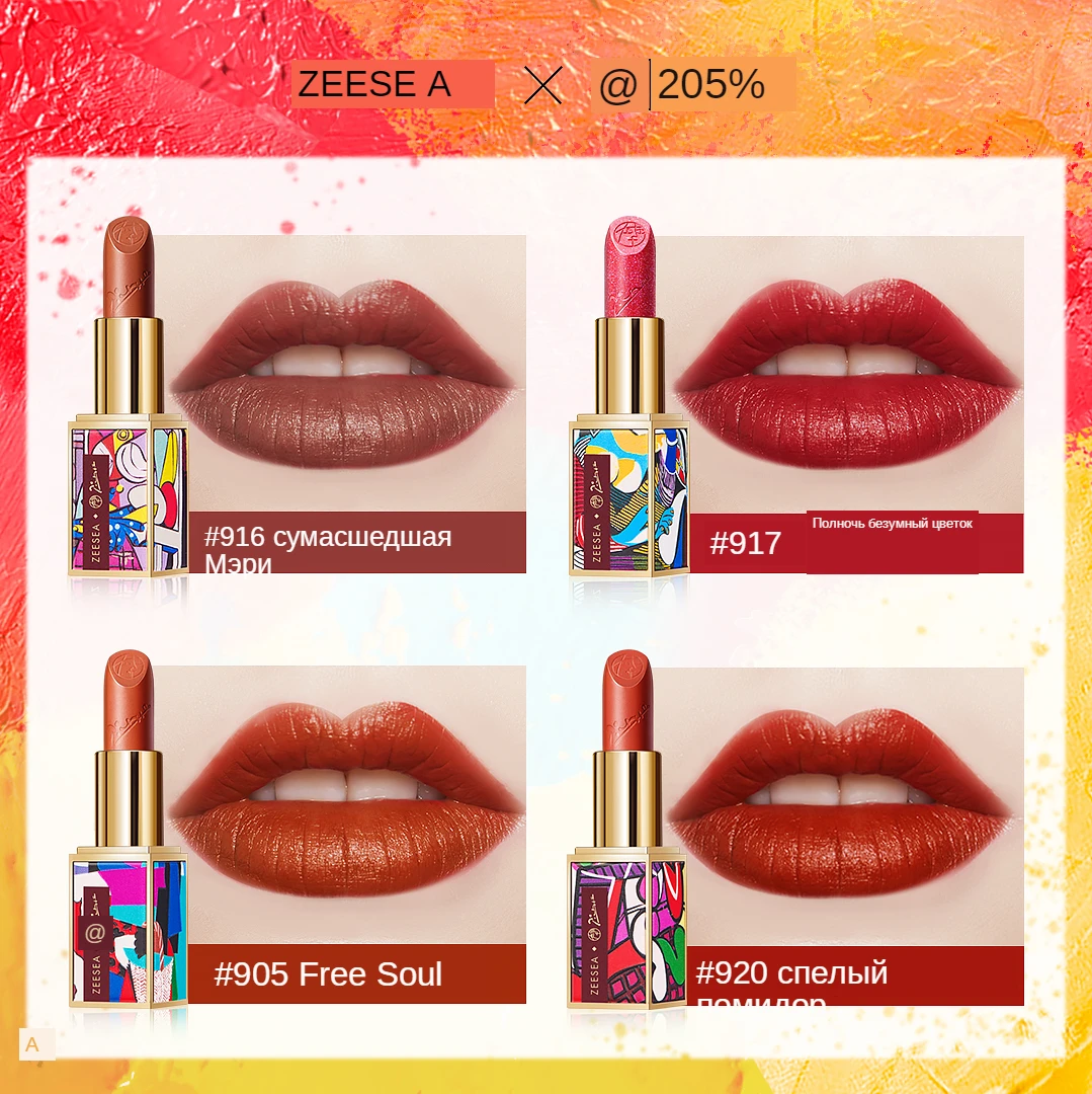 ZEESEA PICASSO Коллекционная губная помада комплект Включает в себя: #905 свободная душа * 1 #916 сумасшедшая Мэри * 1 #917 полночный безумный цветок * 1 #920 спелый помидор * 1