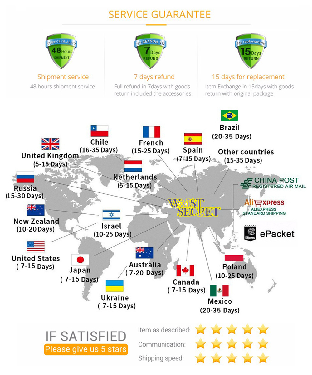 -Возврата:Если есть какие-либо проблемы с качеством, пожалуйста, предоставьте нам подробную информацию в течение 7 дней после получения посылки, мы подтвердим проблему, а затем предложим вам удовлетворительное решение. Все возвращаемые товары должны быть оригинальной посылка, и, пожалуйста, Предложите номер отслеживания.