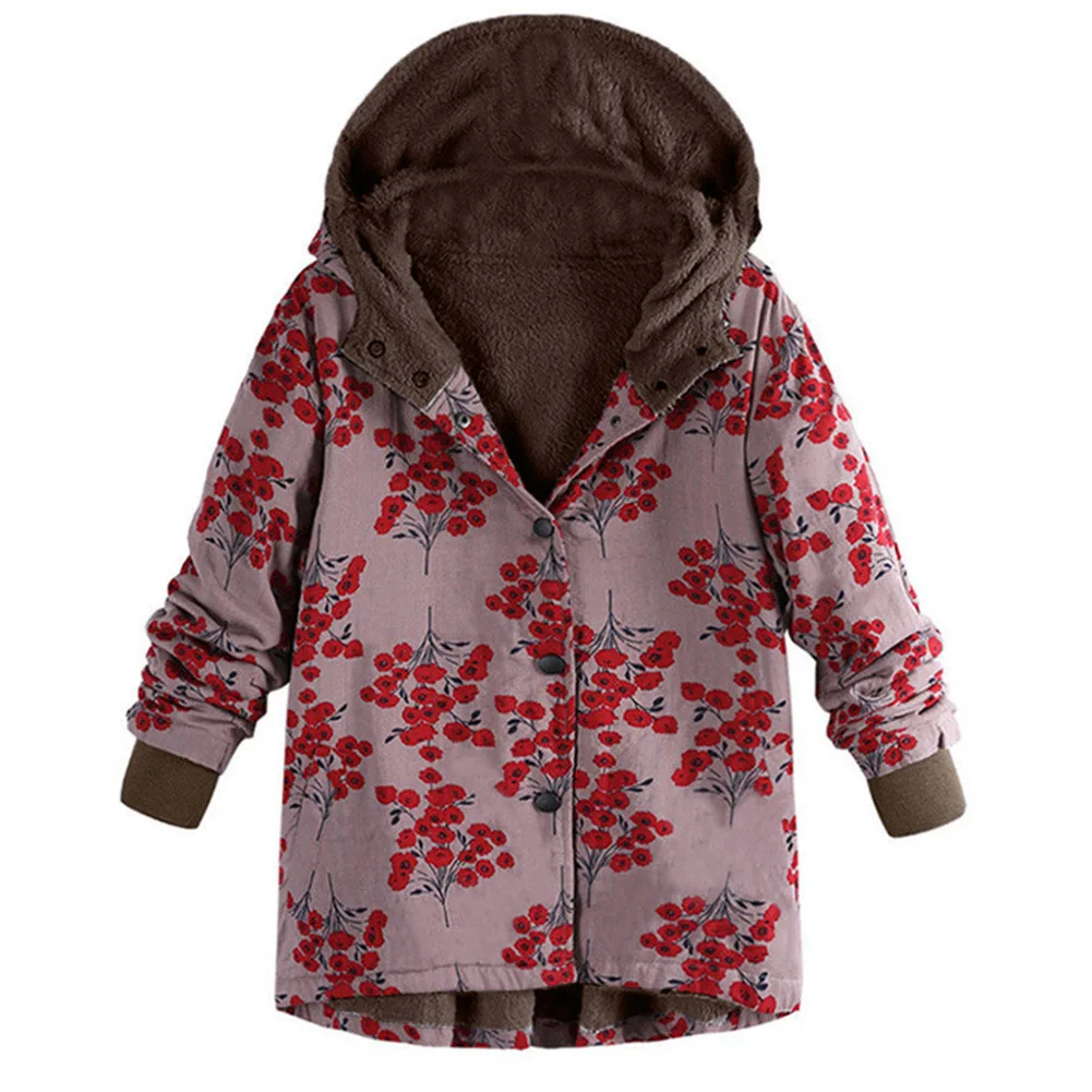 2019 модное женское пальто размера плюс, утолщенная плюшевая теплая зимняя куртка с капюшоном и цветочным принтом, пальто, парки
