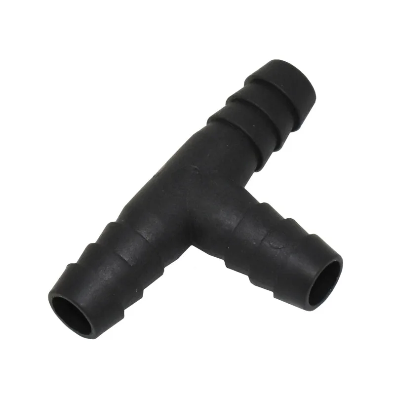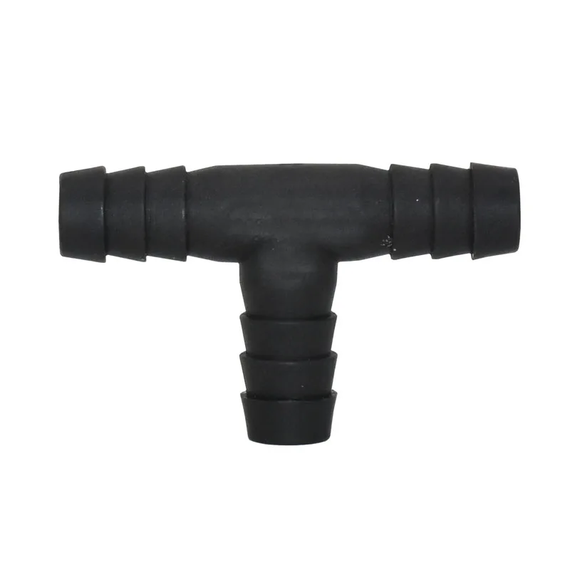 Название продукта: черная футболка t-типа Объем продаж: 7 шт. Толщина: 1 мм Вес: 23 г Интерфейс диаметр: 11,5 мм Материал: пластик Область применения: шланг соединитель, дом, сад орошения Цвет: черный Преимущества: устойчивый к коррозии, прочный