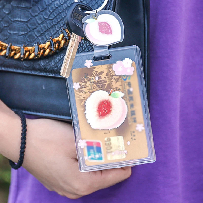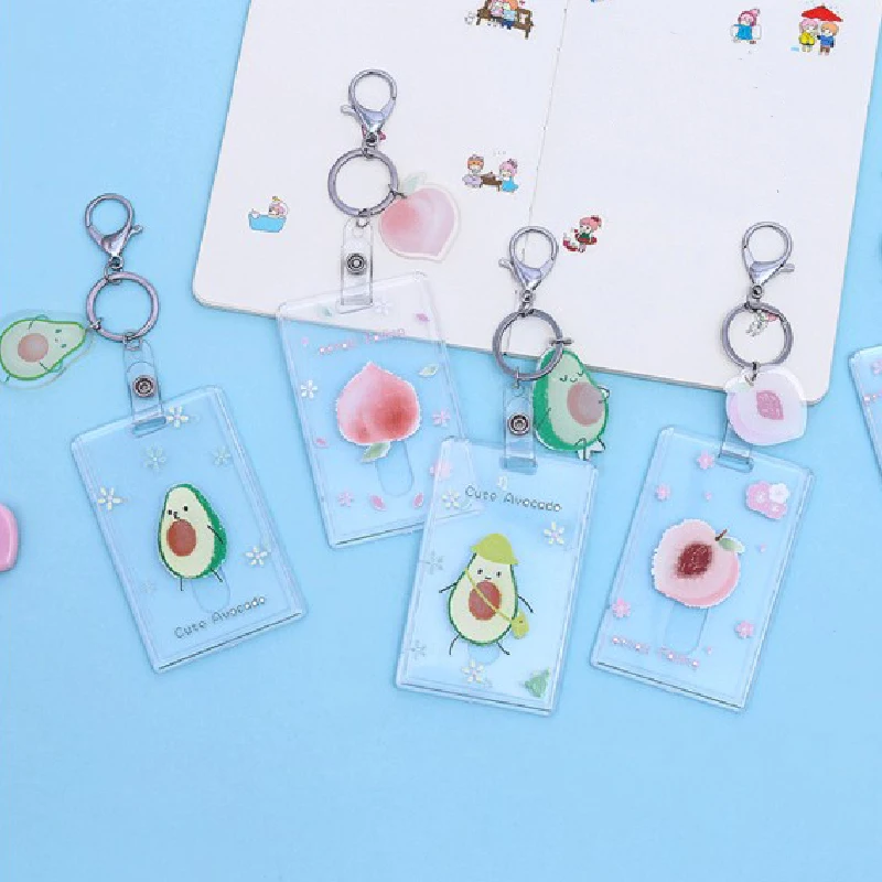 Милый авокадо прозрачный держатель для карты студент мультфильм брелок защита карты