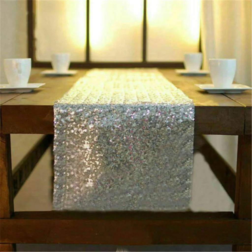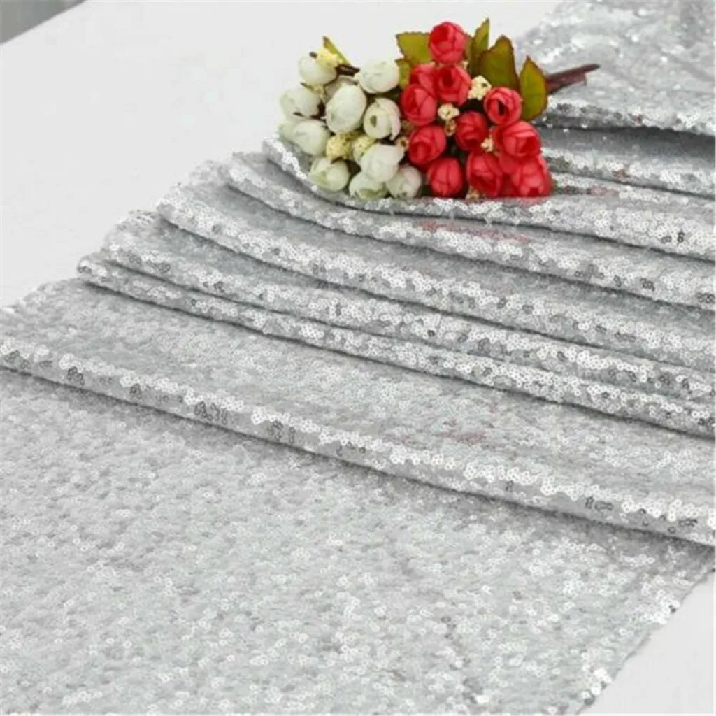 Блестящая серебряная скатерть с блестками, блестящий декор для свадебной вечеринки 30x275 см, украшение для рождественской вечеринки, покрытие для стола