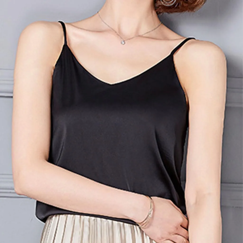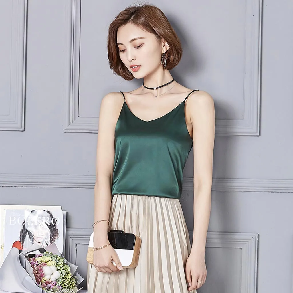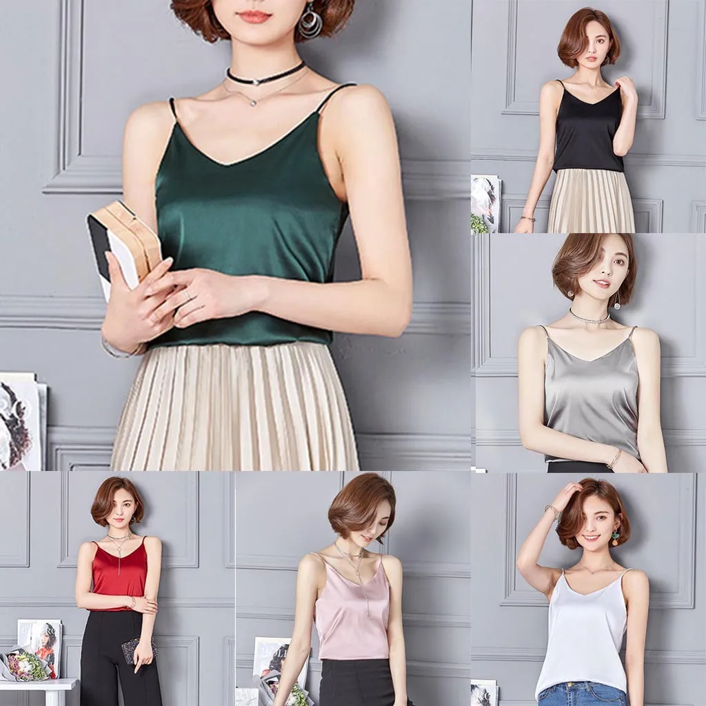 Женская сексуальная шелковая Женская камзол Нижняя блузка рубашка мягкий атласный топ на бретелях