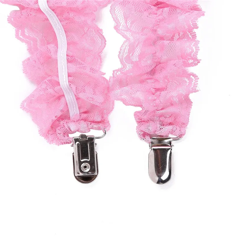 Пояс-подвязка с рюшами и кружевом, 4 ремешка с оборками и металлическими застежками-сердечками