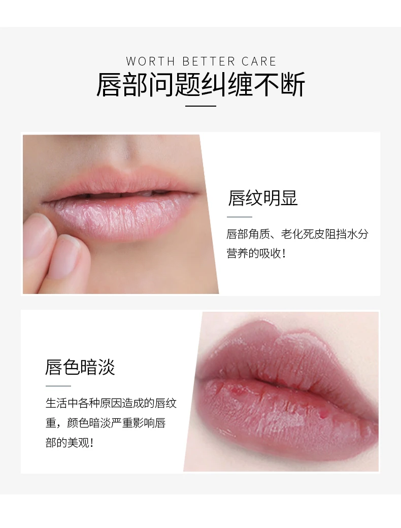 1. Перед сном используйте кисть для губ, чтобы нанести маску для губ на губу 2. Омертвевшая кожа губ постепенно смягчается и растворяется 3. На следующий день с хлопковой подкладкой аккуратно протрите маску для губ
