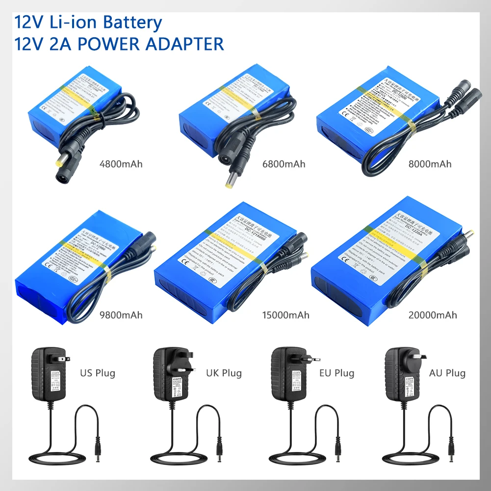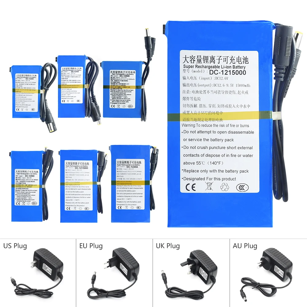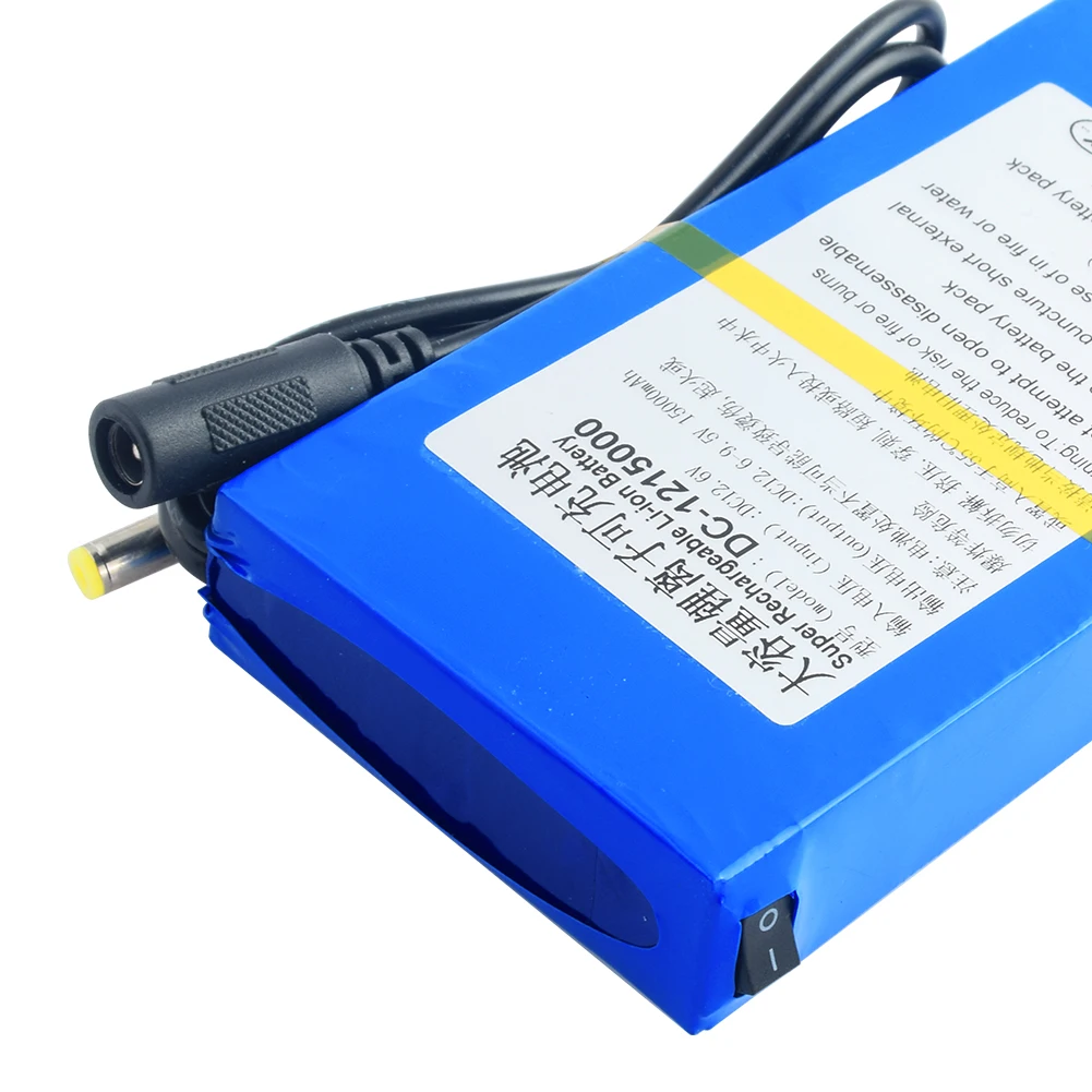 Высокое качество заряжаемые DC-12480/12680/12800/12980/121500/1220A ионно-литиевая аккумуляторная батарея 12 V батареиDC 12 V 2A блок питания зарядное устройство адаптер. На аккумуляторе есть Переключатель ВКЛ/ВЫКЛ.