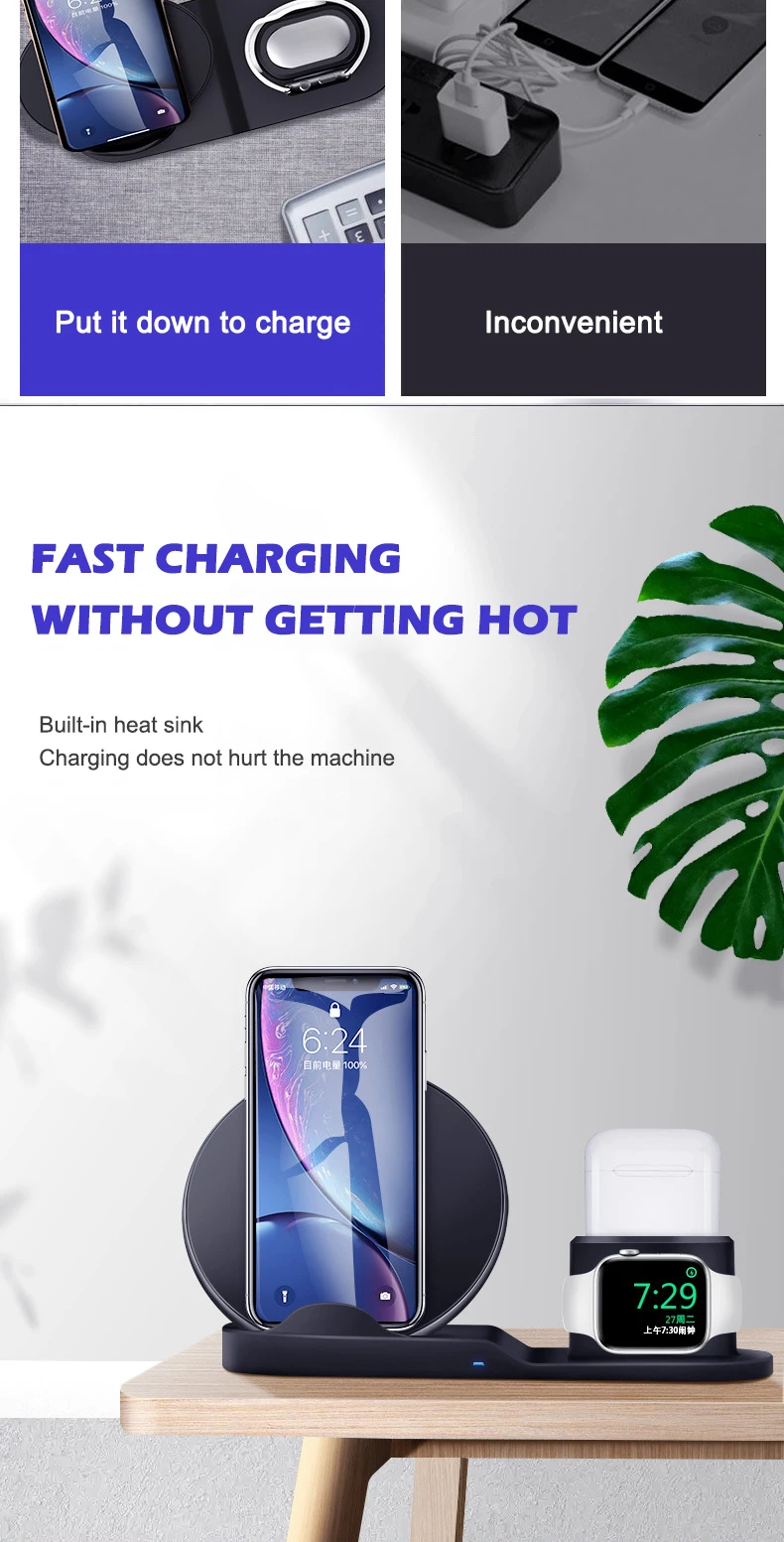 Беспроводное зарядное устройство Функция умножения 3 зарядное устройство комбинируется в одном быстром зарядном устройстве с подставкой для huawei xiaomi для Iphone для Apple watch