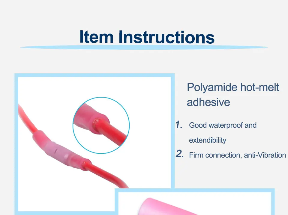 Двухстенный дизайн, полиэтиленовые трубки снаружи и термоплавкий клей внутри. Обеспечивает визуальный осмотр, предотвращает коррозию и обеспечивает водонепроницаемое уплотнение Примечание: 1. Из-за разницы между различными мониторами изображение может не отражать фактический цвет изделия. Спасибо за понимание. 2. Из-за ручного измерения возможна небольшая погрешность в размере.