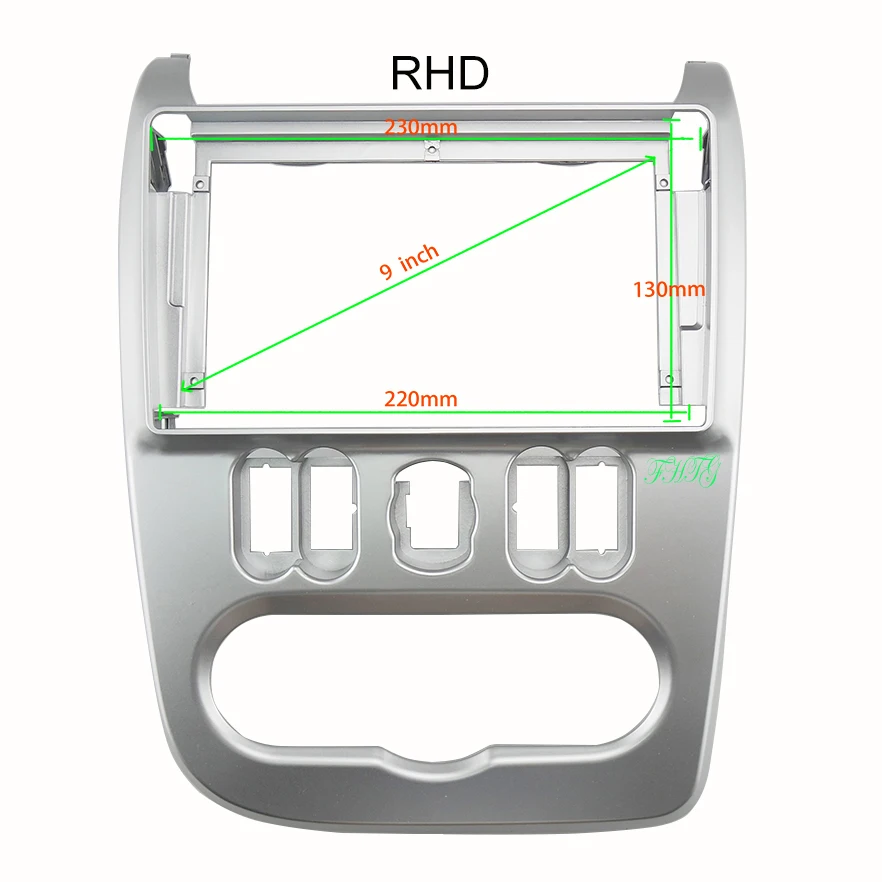 1. Фасция подходит для RENAULT LOGAN (9 дюймов) 2010-2013 2. Цвет: Серый или черный (серый-Темная, не совсем подходящая к оригинальной серебристой приборной панели, пожалуйста, обратите внимание) 3. Материал: АБС-пластик 4. Размер установки: 9 дюймов 5. Сделано в Китае, хорошее качество 6. Более 1000 моделей фасции, больше моделей и количества, пожалуйста, свяжитесь с нами. Больше количества, более выгодная цена.