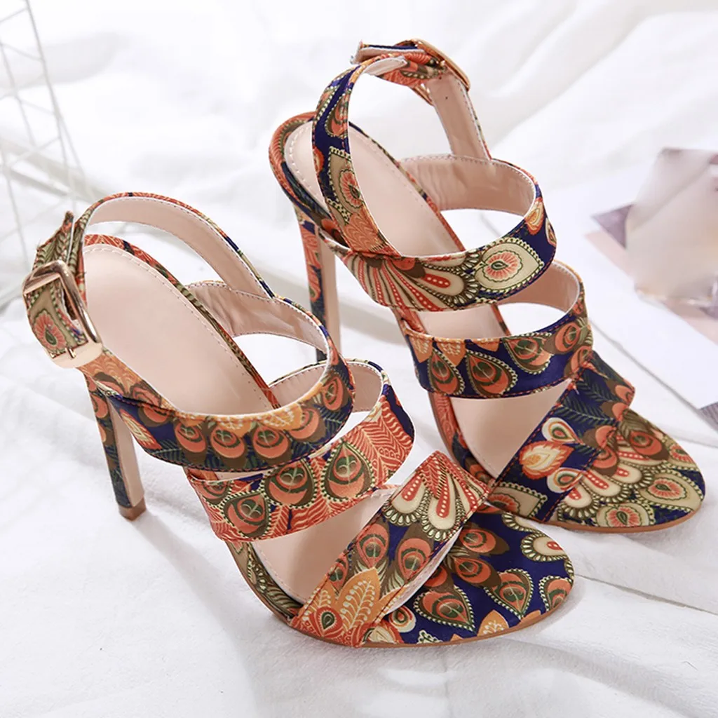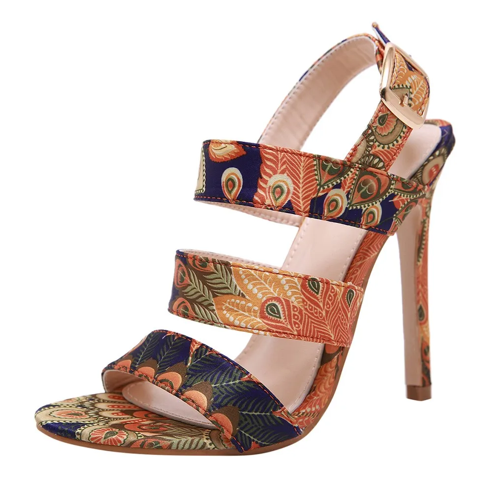 Women's Pointed Toe Sandals Stiletto High Heel Shoes Buckle Casual Pump Sandals