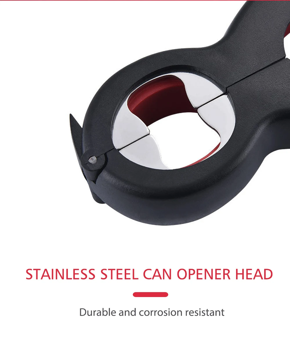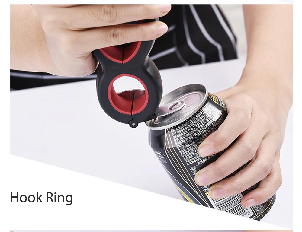 Многофункциональный Открыватель 6 в 1 может открывать шесть различных типов уплотнений, крышек: сумки, защитные пломбы, вкладки для бутылок, крышки для банок. Хороший помощник для выполнения домашних функций, легко решить самые прочные бутылки и банки. Удобная рукоятка отлично подходит для детей, пожилых людей и страдающих артритом. Делает открытие любой крышки ветерком. Можно открыть колпачки, не повреждая руки или используя слишком много силы. Технические характеристики: Название продукта: консервный нож Размер продукта: 14,3x6,3x2,4 см/5,67x2,6 x 0.94in Материал: PP Вес: 25 г Цвет: черный и красный