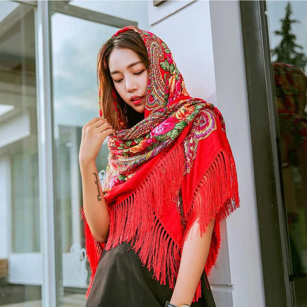 90 см * 90 см, Русский Бренд, большой размер, квадратный шарф, хлопок, длинный шарф с кисточками, весенне-зимняя шаль, женская накидка из пашмины