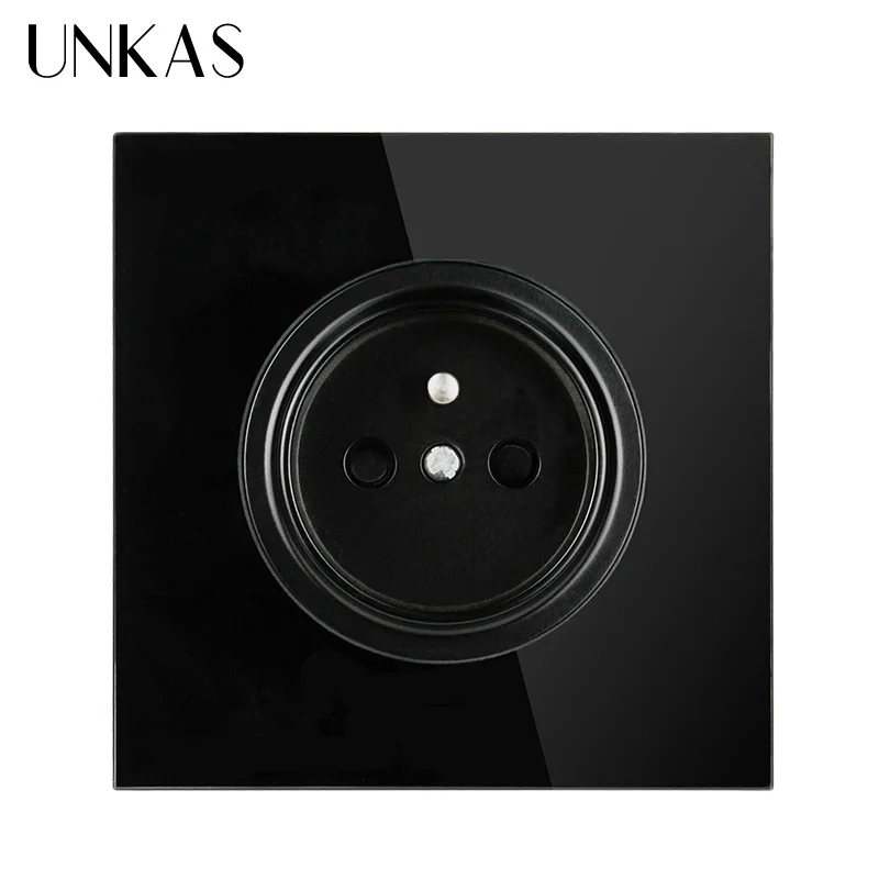 UNKAS Золотая настенная розетка, заземленная 86*86 мм французская стандартная настенная розетка, Хрустальная стеклянная панель, адаптер для зарядного устройства