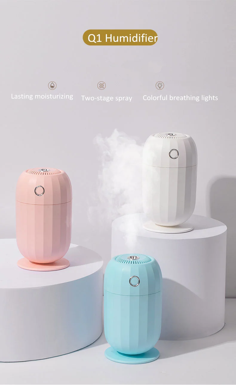 Характеристики:-100% абсолютно новый и высококачественный-бесшумный и непрерывный режим работы не будет мешать работе, сну и езде. -Рассеивающий туман на протяжении всего вашего жилого пространства и повышает влажность пространства кожи. Параметры продукта Название продукта: увлажнитель воздуха Q1 Материал: АБС/ПП/электронные компоненты Размер продукта: 76*76*138 мм Цвет: белый, розовый, синий Рабочее напряжение: 5 в пост. Тока Рабочий ток: 500 мА Потребляемая мощность: 2,5 Вт Емкость резервуара для воды: 300 мл Количество распылителя: 40 мл/ч время: 4-6 ч