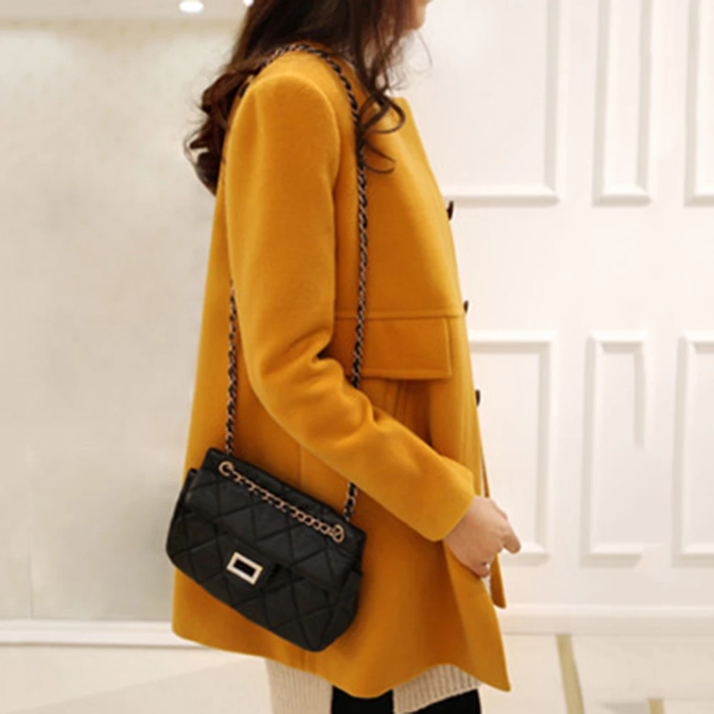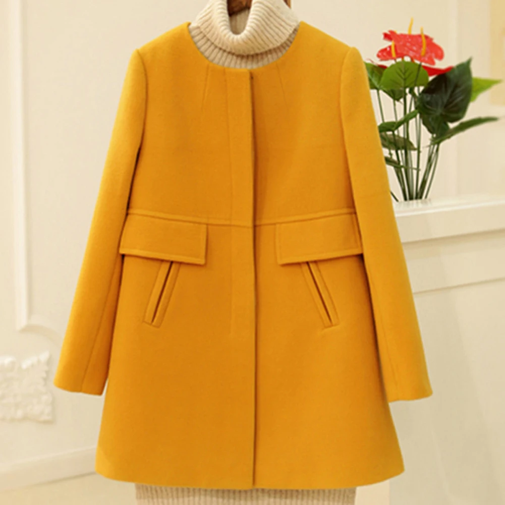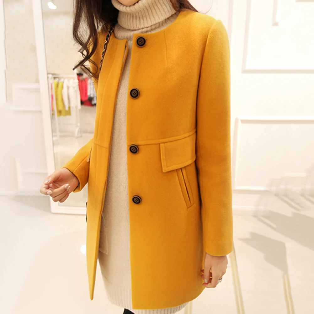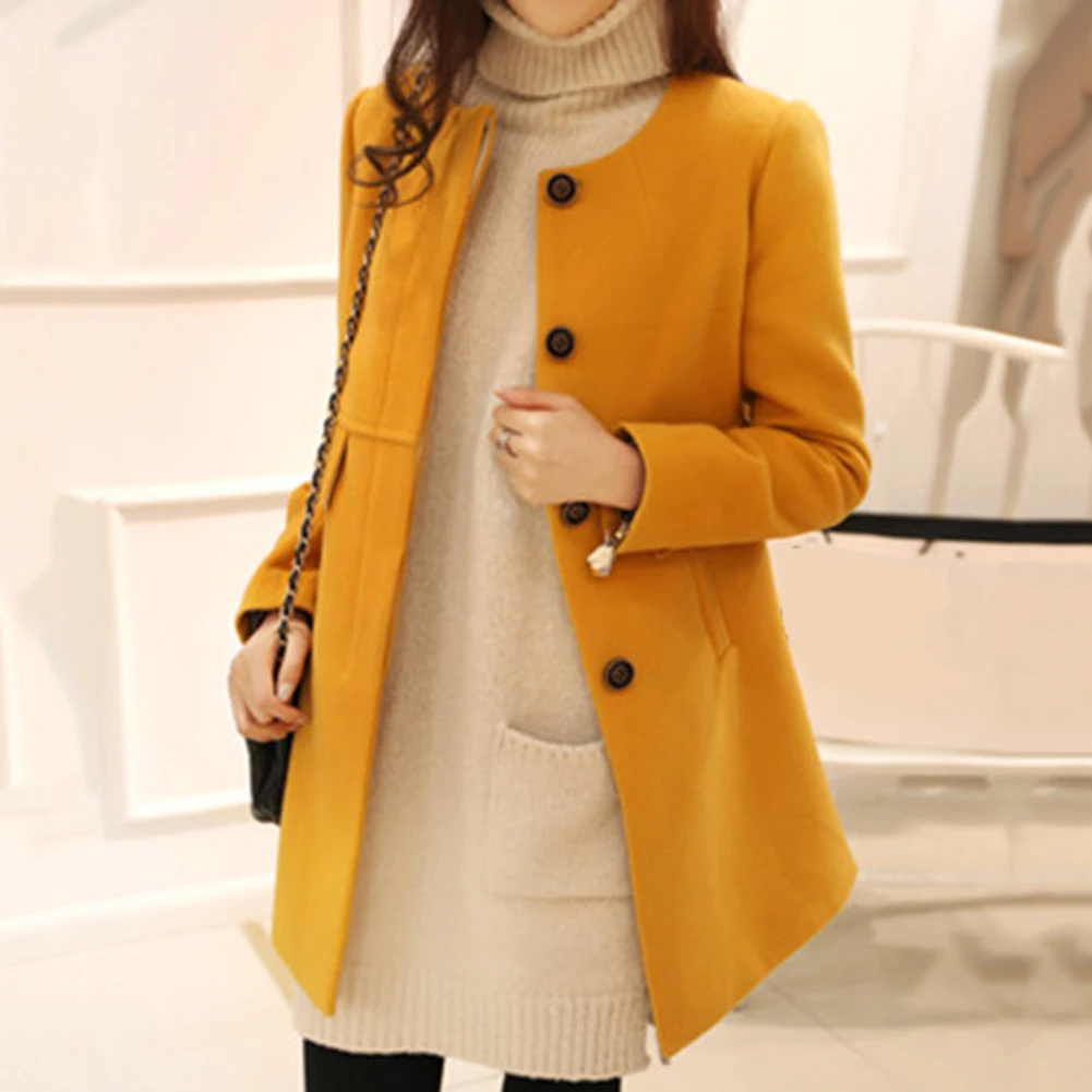Женский зимний шерстяной плащ с длинным рукавом и круглым вырезом на пуговицах размера плюс