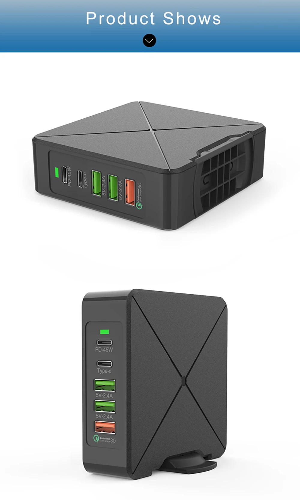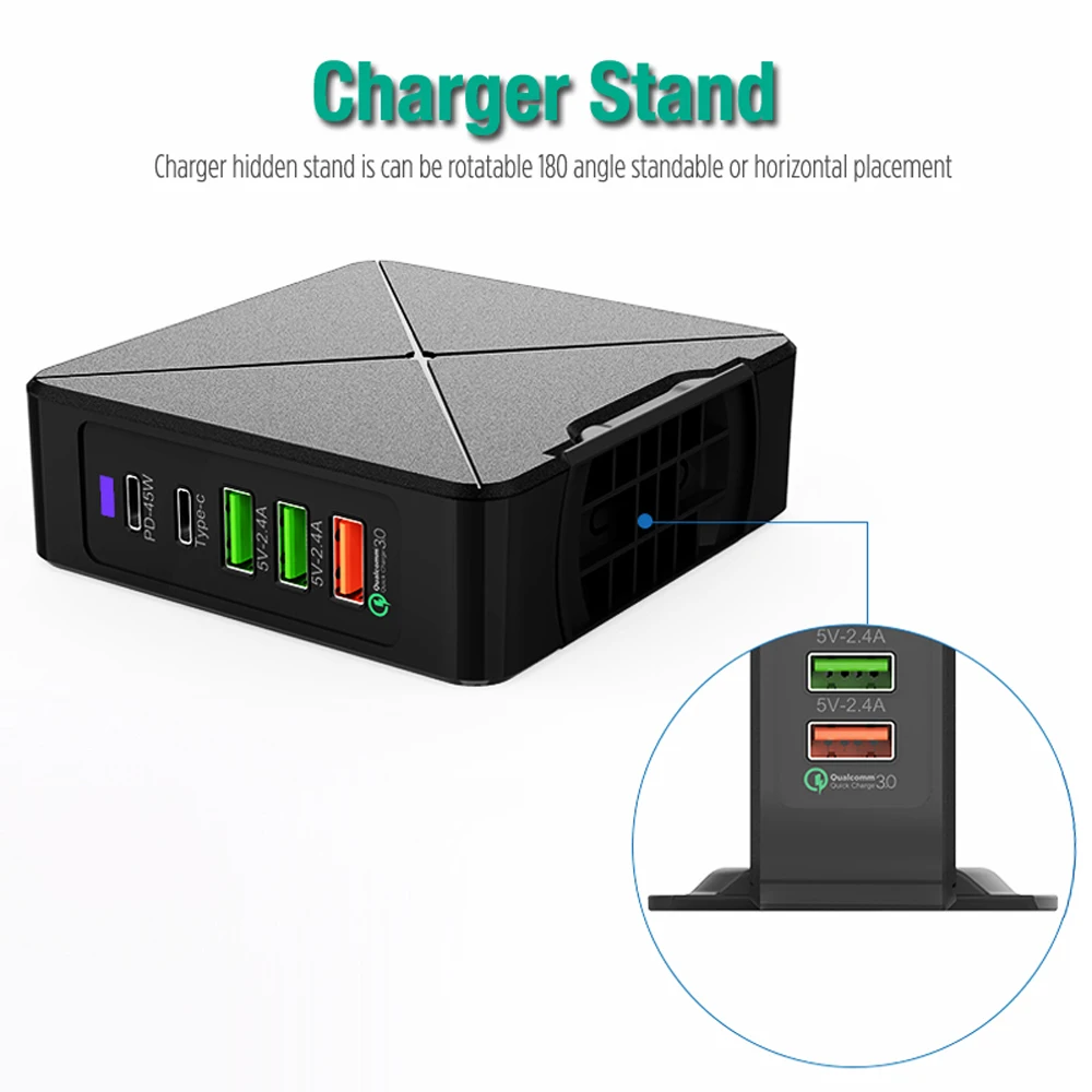 75 Вт 45 Вт USB зарядное устройство PD Type C быстрое зарядное устройство для iPhone 8 X XR для Samsung мобильный телефон QC 3,0 быстрое настенное зарядное устройство для macbook air Описание: 1. Несколько зарядных устройств USB, зарядная станция, беспроводное зарядное устройство, быстрое зарядное устройство PD, быстрое зарядное устройство QC3.0, зарядное устройство для адаптера питания на мобильный телефон, планшет, MP3, камеру и т. д. 2. Вход: AC100-240V В переменного тока, 50/60 Гц Выход: 75 Вт (макс.) Выход USB PD: 5 В/3 А-9 В/3A--12V/3a--15в/3 А (45 Вт) макс. (Подходит для ноутбуков 45 Вт или ниже) TYPE-C Выход: 5V-2A Макс. Usbвыход: макс. 5V--2.4A. QC3.0Output: 3,6-6,5 V/3A 6,5-9V/2A 9-12V/1.5A(18 Вт) Макс. 3. Материал: АБС + Поликарбонат, огнестойкий и огнестойкий 4. Применение: A. Умное зарядное устройство USB на мобильный телефон, планшеты B. Многопортовая USB зарядная станция для дома, офиса и т. Д. Посылка: 1 x Зарядное устройство 1x1,2 метровый кабель питания (ЕС или США) Кабель type-c-1 м (по выбору)