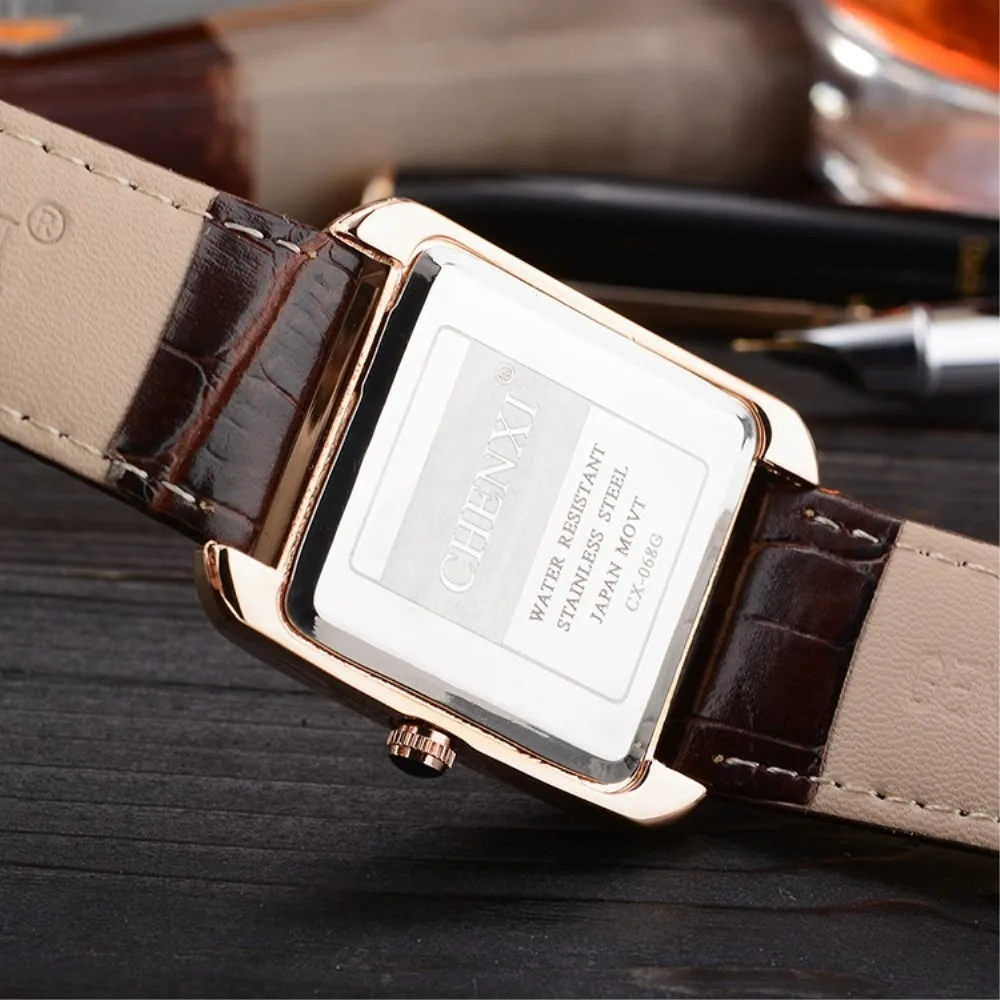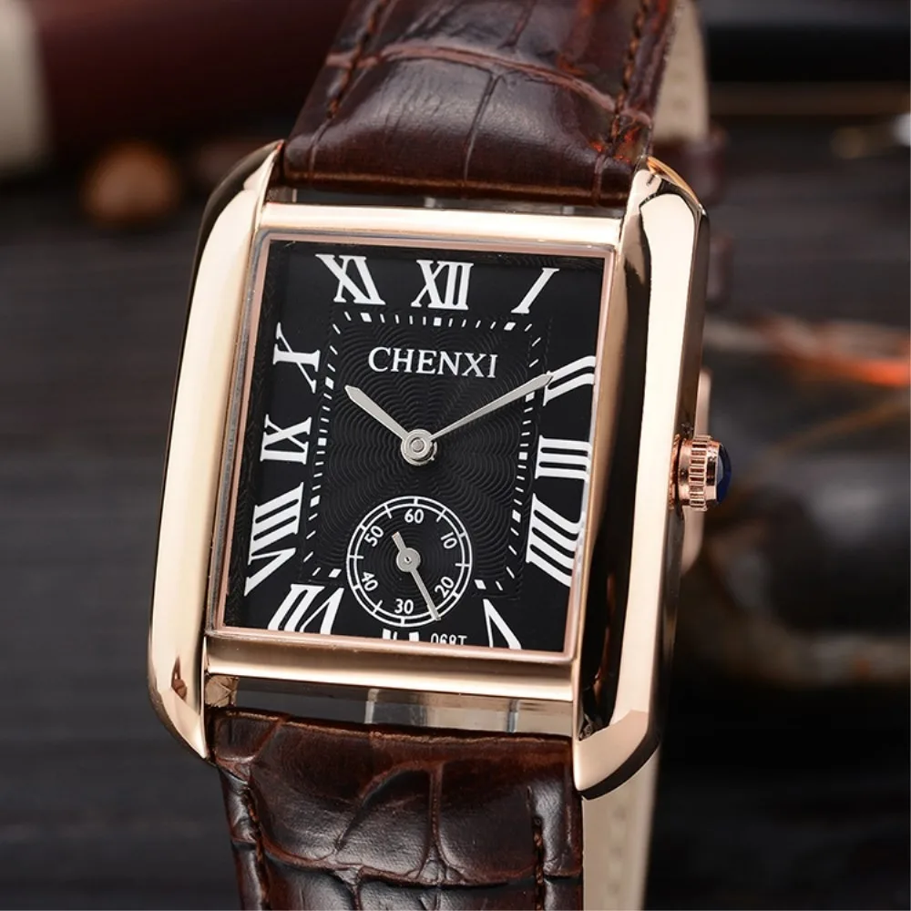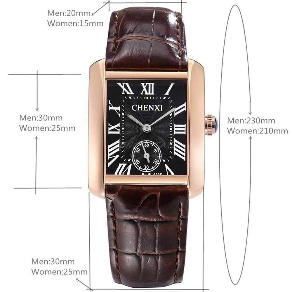 Бренд: CHENXI Материал корпуса: высококачественный сплав Материал ремешка: кожа Диаметр корпуса: 30 мм WatchThickness: 9 мм Ширина ремешка: 20 мм Длина Часов: 210 мм Вес часов: 65 г