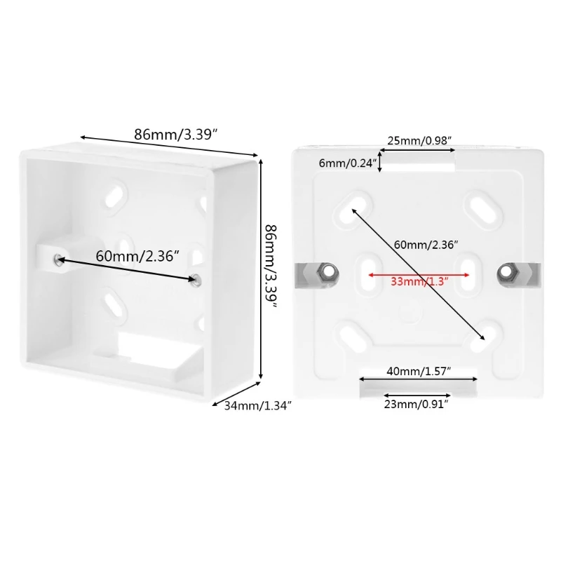 Размеры: Длина 86 *, ширина 86 мм, глубина 34 мм, Расстояние Монтажного Отверстия 60 мм