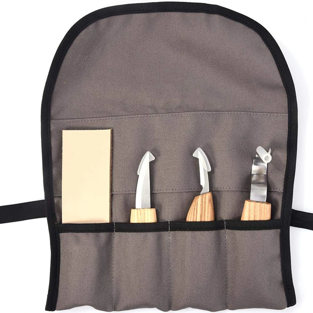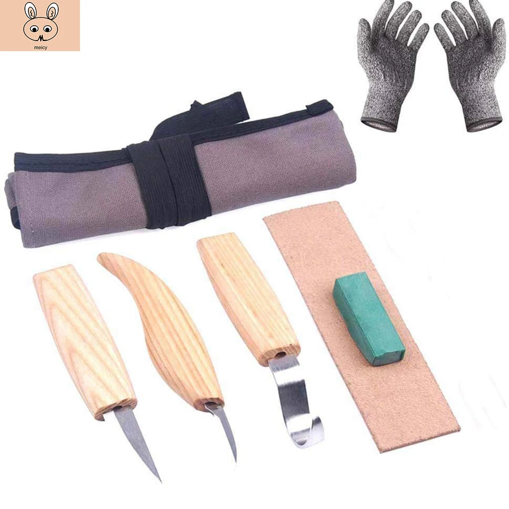 ④ Полный набор инструментов для резьбы-вы получите нож с крюком, нож для выбеливания, нож для деталей, перчатки с защитой от порезов, кожаный ремень и полировочное соединение. Также с холщовыми инструментами в комплекте, он обеспечивает лучшую защиту и хранение ваших ножей для резьбы, и делает все более деликатным