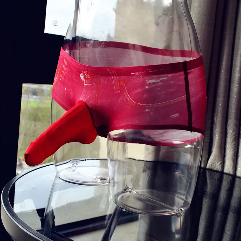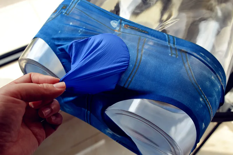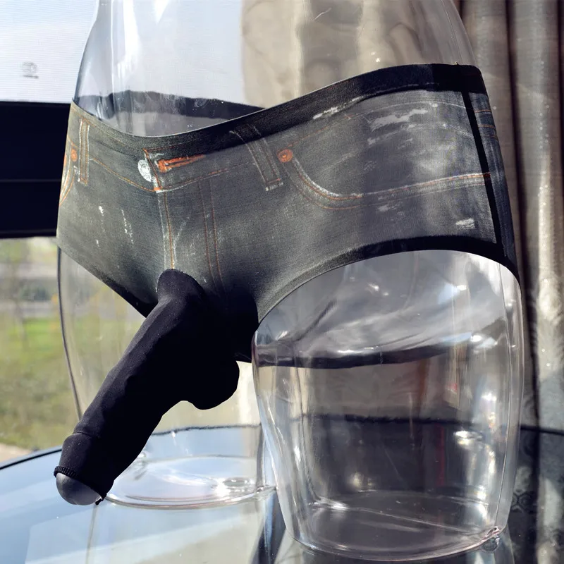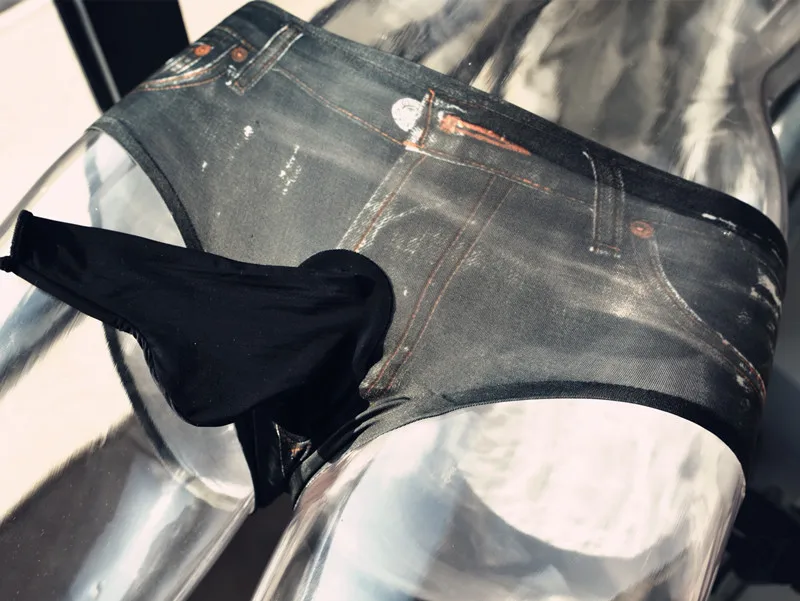 Мужское нижнее белье с выпуклым карманом спереди, сексуальное нижнее белье для мужчин, стринги, штаны для ночного клуба, стрейчевые, имитация джинсовой ткани, 3D принт