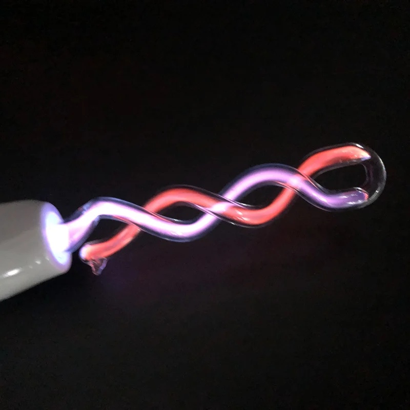 2) неоновый газ, который производит оранжевое свечение. Высокочастотный электрод выступает в качестве безопасного проводника тока.