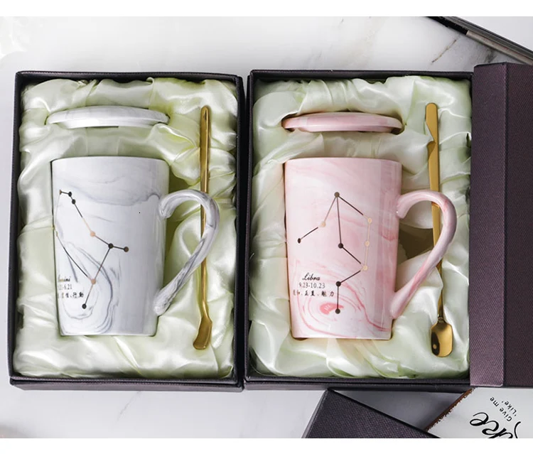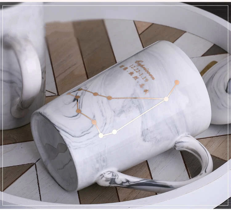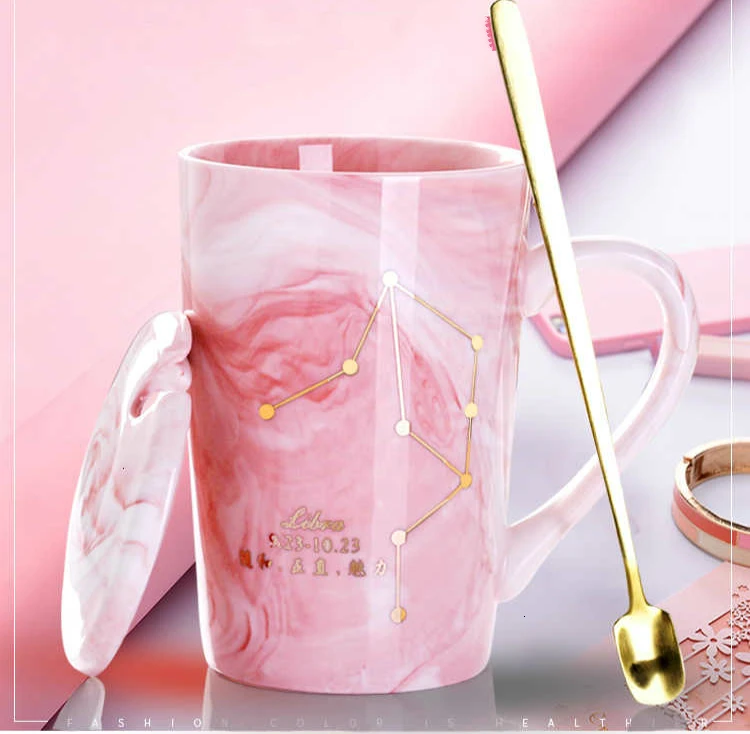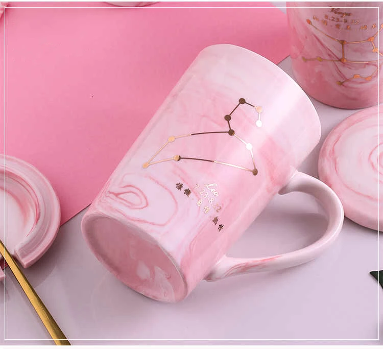 Натуральный Мрамор 12 созвездие керамическая розовая кружка зодиака с крышкой кофейные кружки креативная индивидуальная чашка 380 мл чашки и кружки Xicara