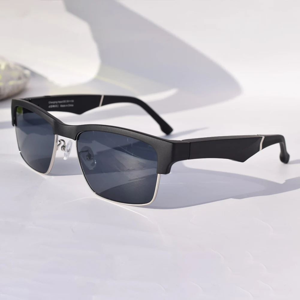Беспроводные Bluetooth Смарт-очки водонепроницаемые басы Hifi очки черная оправа Серебристые края сенсорные Hands-Free Звонки музыкальные солнцезащитные очки