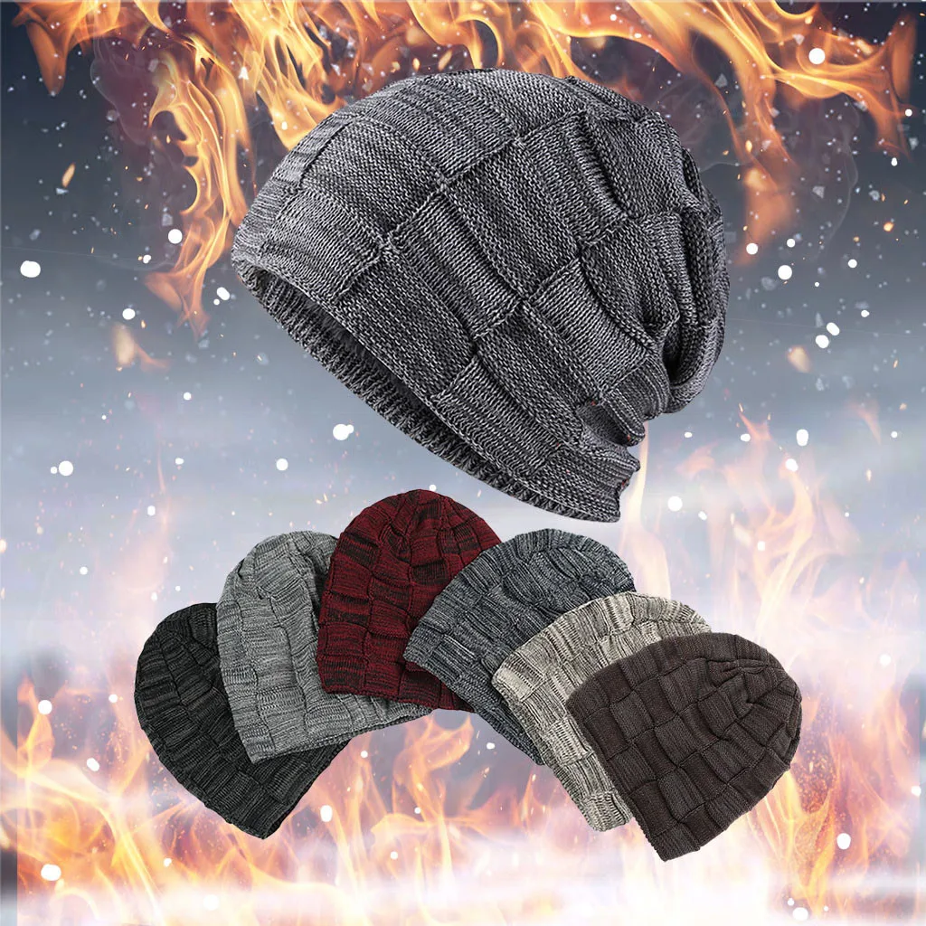 Joycosin Women Men Warm Baggy Weave caps Crochet Winter fluff Inside Beanie Knitted caps Solid color Skull Caps Hat