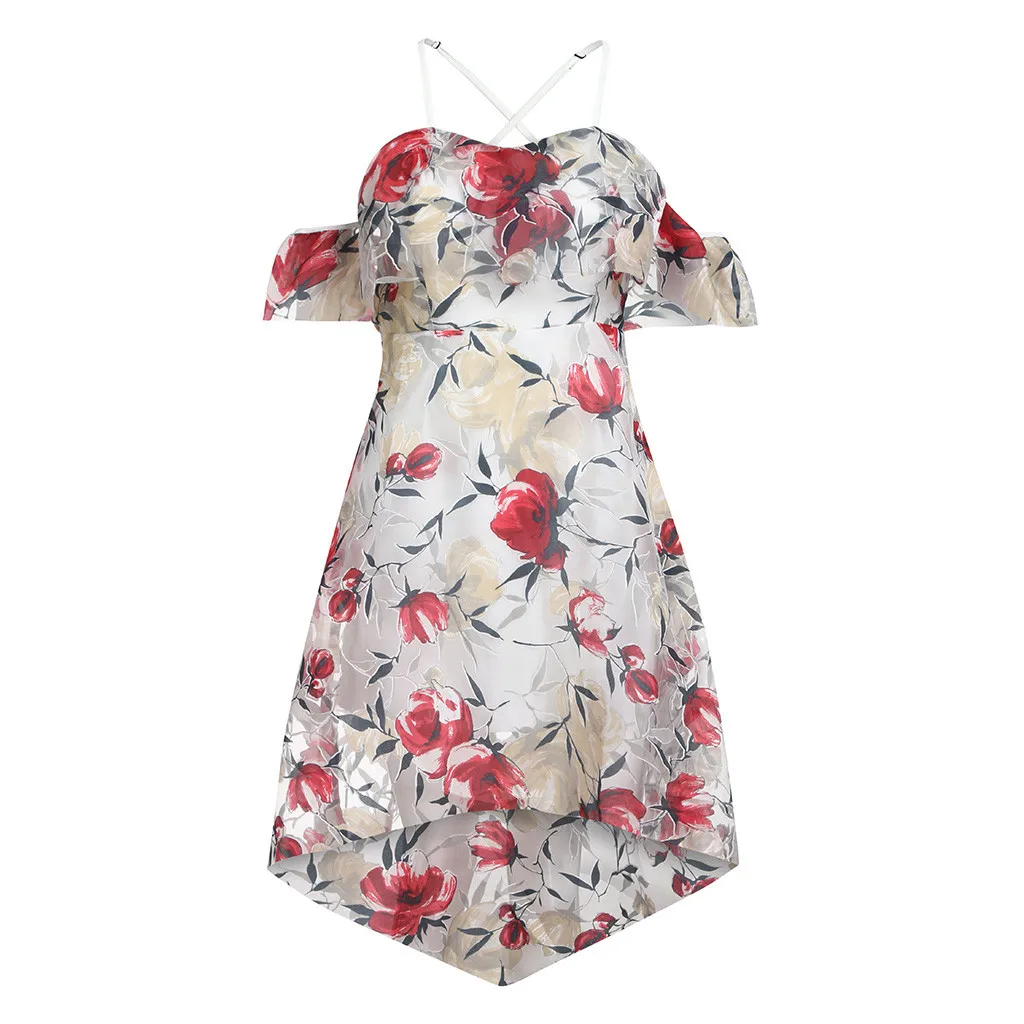 Женское Пляжное Платье макси с открытыми плечами и цветочным принтом