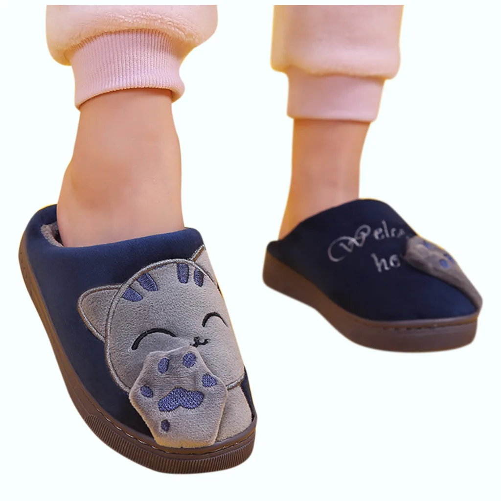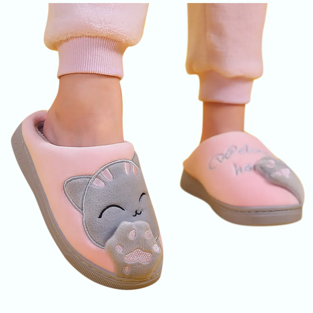 Детские зимние тапочки для мальчиков и девочек, Нескользящие тапочки с мультяшным котом Для дома В помещении;