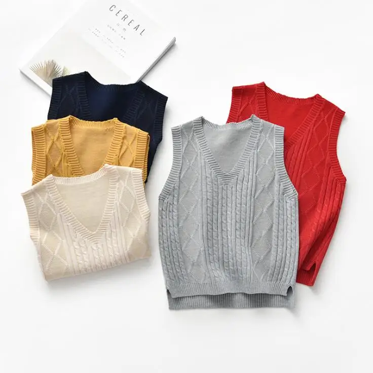 Хлопковый вязаный жилет без рукавов с v-образным вырезом для маленьких девочек и мальчиков; зимние свитера