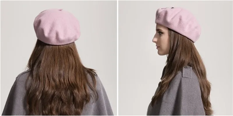 Прямая поставка, женские береты французского художника, 100% чистая шерсть, берет, Зимняя шерстяная Толстая теплая шапка, милые береты с вышивкой, шапки художника